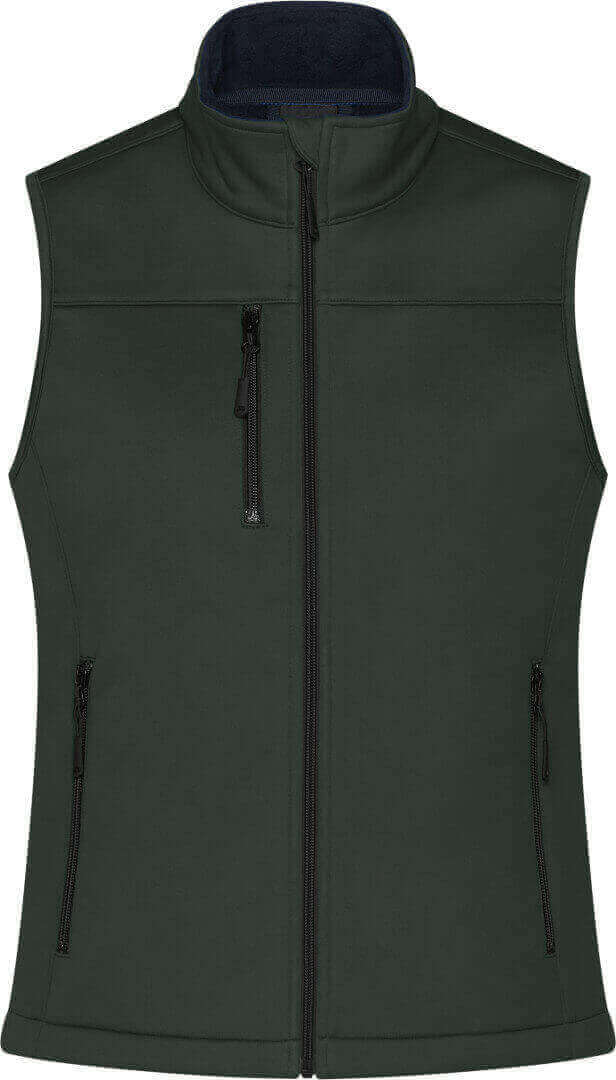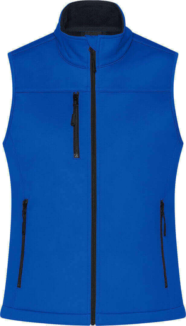 Dámska, 3-vrstvová softshellová vesta, funkčná tkanina s membránou TPU, odolná proti vetru a vode (5000 mm), priedušná, stojatý golier, zipsy YKK, 2-smerný zips po celej dĺžke s chráničom brady, vrecko...