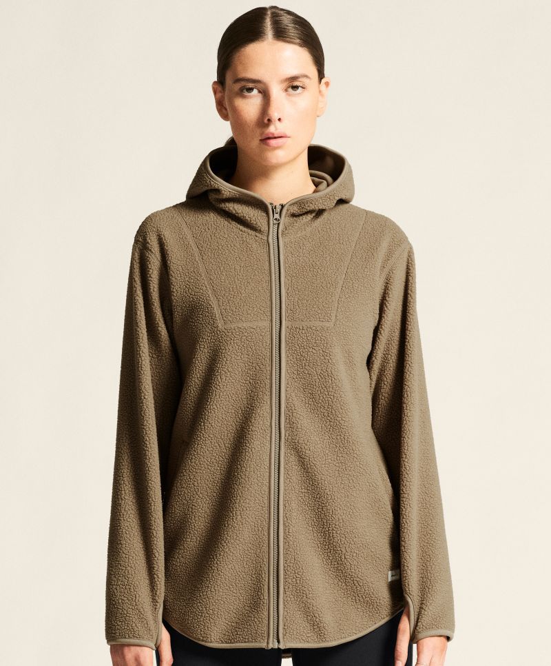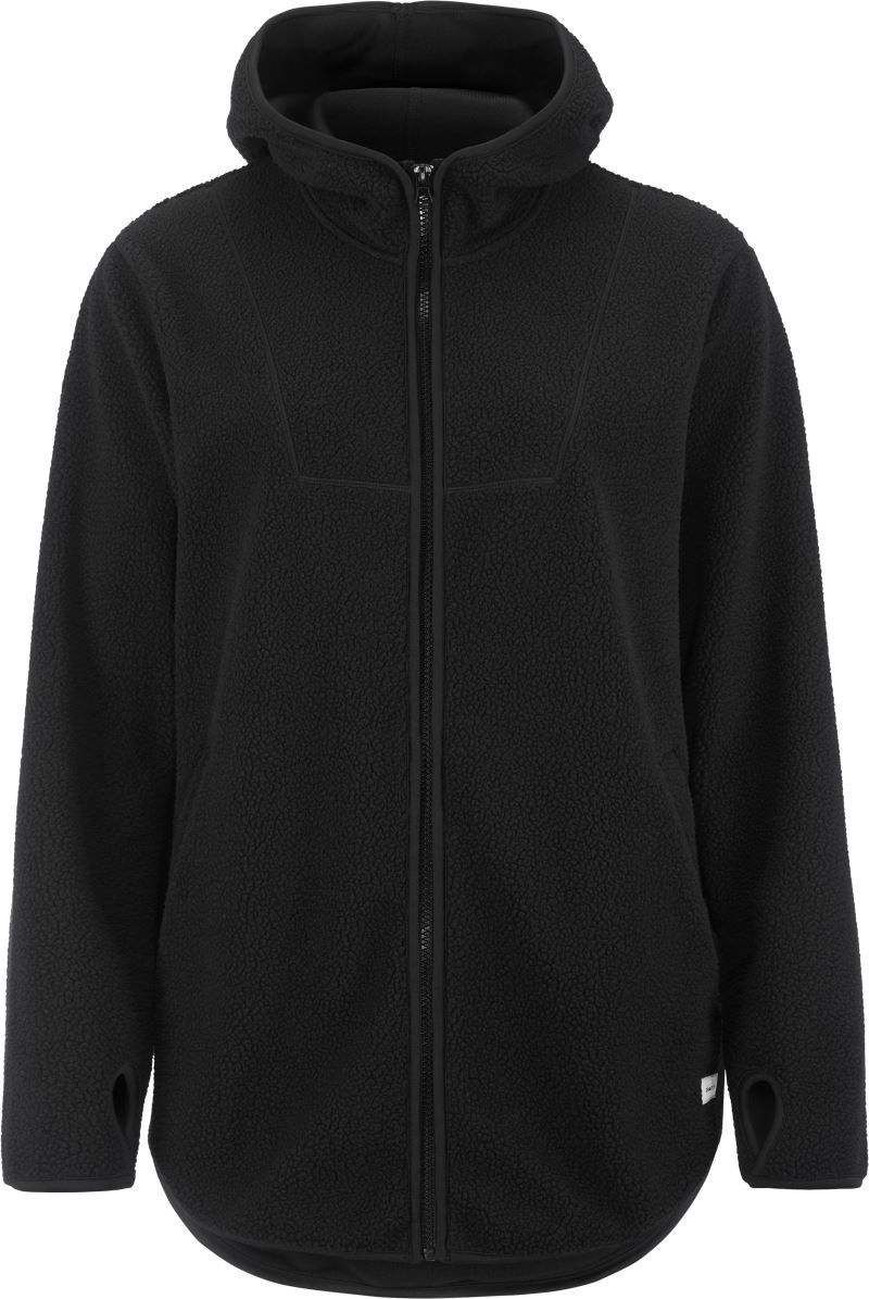 Voľný strih, hladná vnútorná strana, zaoblený lem, elastický okraj rukávov s otvorom na palec, celoprepínací zips, 2 bočné vrecká, mäkký materiál.