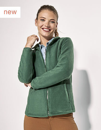 Dámska flísová bunda s vysokým golierom a farebne zladenou spevňovacou páskou za krkom | Zips v rovnakej farbe | So sťahovákom z materiálu bundy | Elastické manžety | Elastická sťahovacia šnúrka so zarážkou v leme | Odtrhávací štítok.
