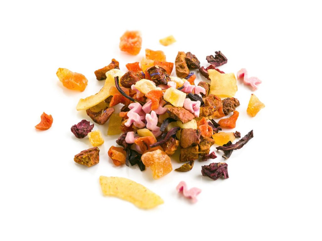 Dámska jazda je ovocný čaj, ktorý rozžiari každé stretnutie s kamoškami. Plný ružových cukrových plameniakov, kúskov jabĺk, papáje, mrkvy, červenej repy, ibišteka, manga, plátkov kokosu, kvetov nevädze a šafránu, prírodnej arómy. Príprava: 1 lyžička na 2 dcl, 100 °C, lúhovať 8–10 min. Pre dokonalú čajovú párty plnú radosti. Váha: 70 g