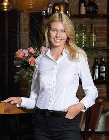 Komfortný fit. Golier typu Kent. S dlhým rukávom. Strečová tkanina zaisťuje maximálne pohodlie. Možno prať pri teplote 95°C. Vhodné pre priemyselné pranie a čistenie.