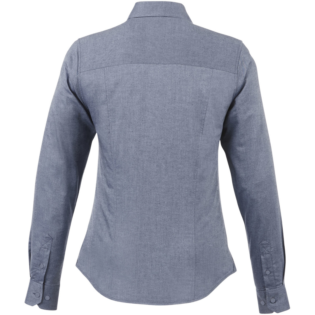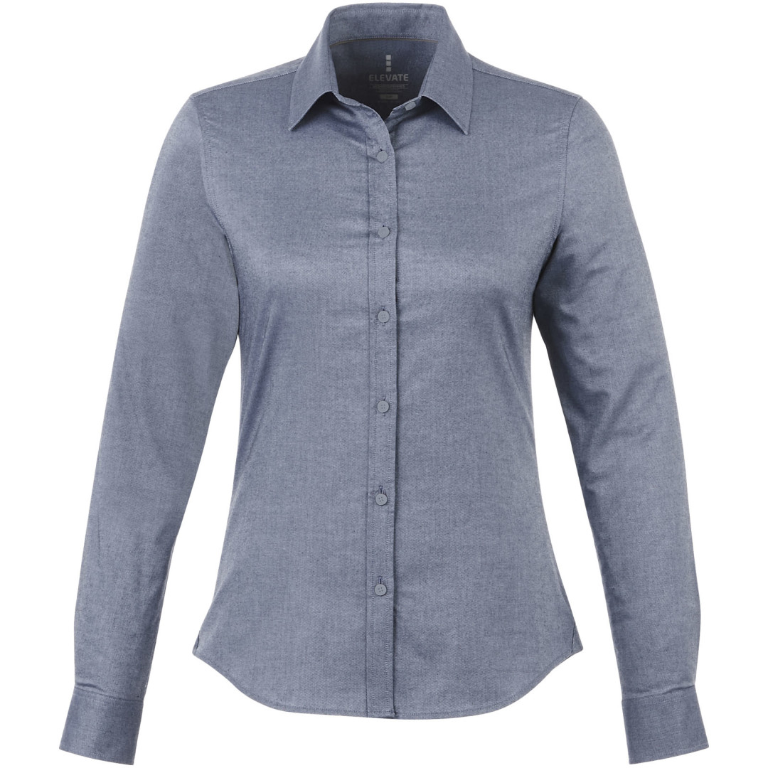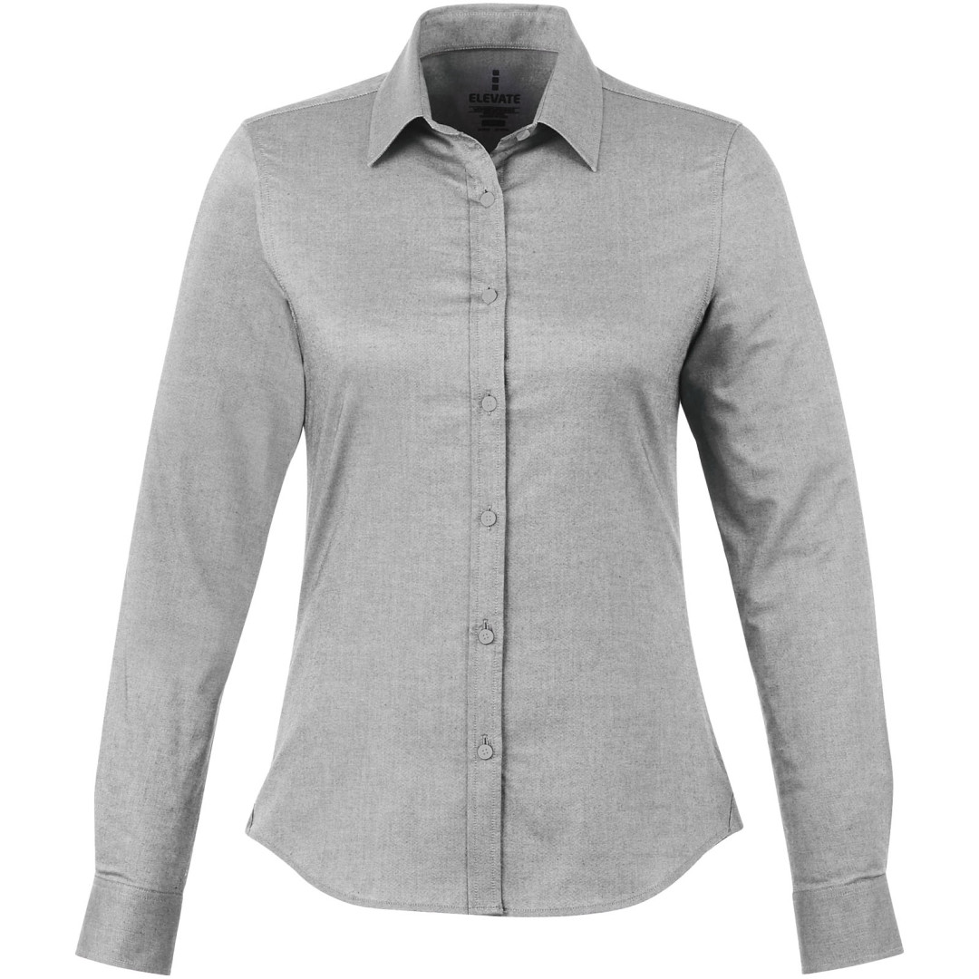 Dámská košeľa Vaillant. Pánsky strih s golierom na gombíky. Biele gombíky s gravírovaním Elevate. Druhá gombíková dierka od spodného lemu s oranžovým stehovaním. Manžetky s dvoma gombíkmi pre nastavenie veľkosti. Rozparok rukáve so zapínaním na gombík. Logo tlačené v farbe na chrbte. Hodvábne lemovanie vnútorného výstrihu. Oxford, 100% bavlna, 40x32 / 2, 110x50. 140 g / m².