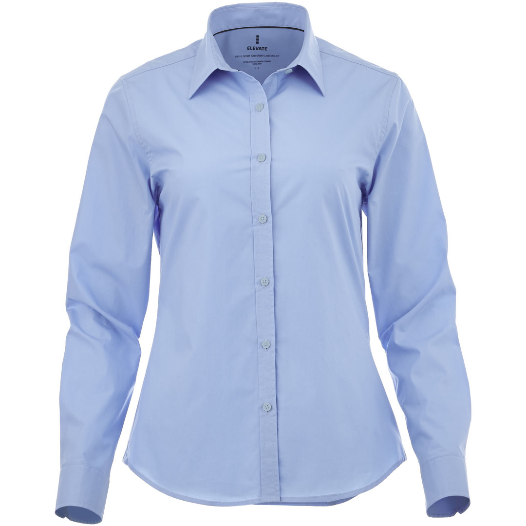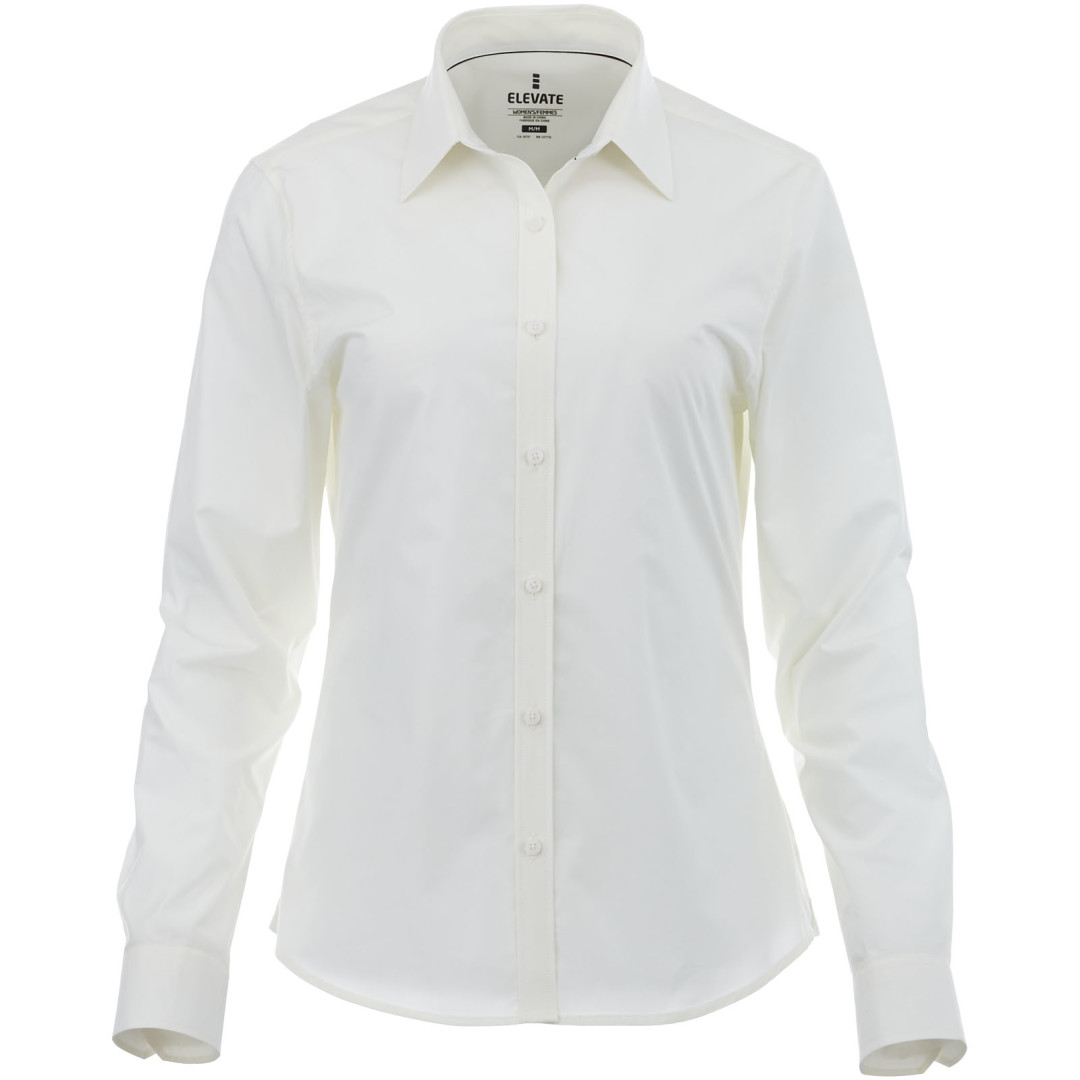 Dámska košeľa Hamell. Skrytý gmbík po límcem.Stretchová látka.Nastavitelná manžeta s jednym záhybom.Saténové lemovanie vnútorného výstrihu.Tvarované švi a zúžený pás pre zoštíhľujúci fit.Gravírované gombíky farebne .Značka technológií heat transfer pre