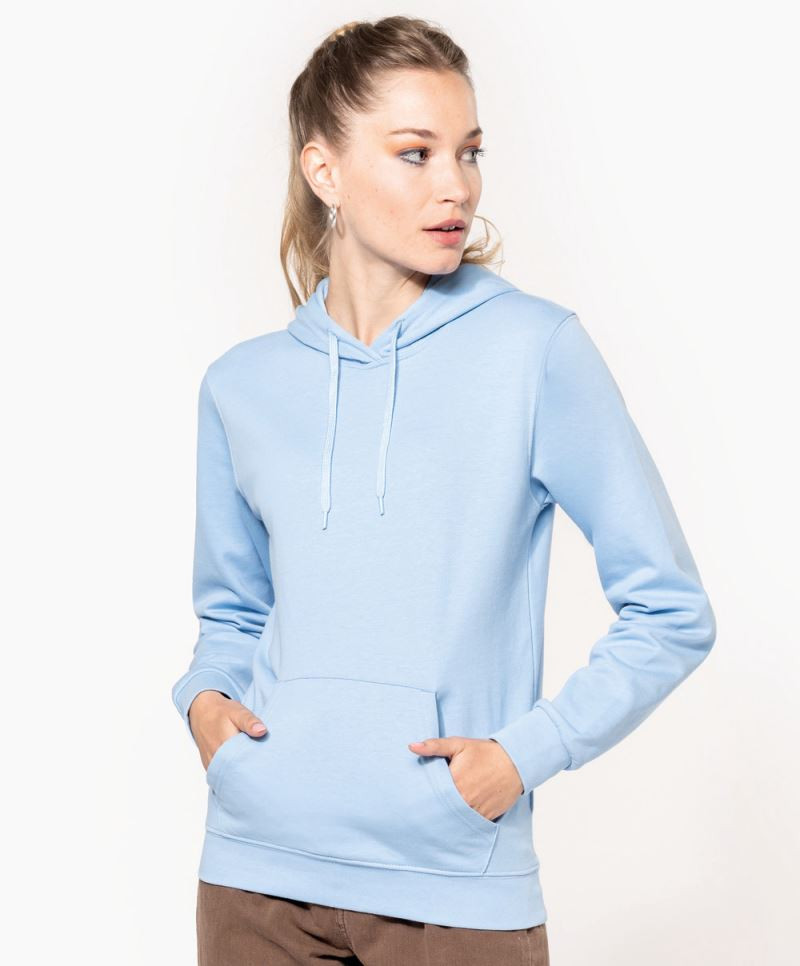 Kapucňa s podšívkou a sťahovacou šnúrkou tón v tóne, vsadené rukávy, pletené manžety na rukávoch a leme, klokanie vrecko, zdrsnená vnútorná strana, prateľné na 40 °, nemožno sušiť v sušičke, nemožno chemicky čistiť.
