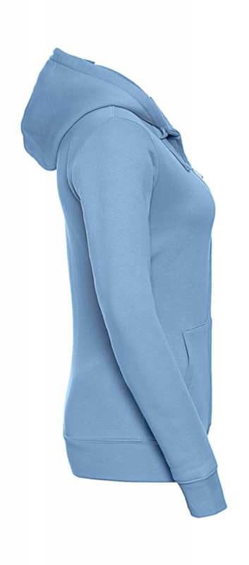 ·280 g/m² ·80% bavlna, česaná, prstencová, 20% polyester (trojvrstvová tkanina) ·dvojvrstvová kapucňa ·ploché, robustné sťahovacie šnúrky ·spevňujúca páska na krku so štruktúrou rybej kostry ·úzke rukávy s prešitím na ramenách smerujúcim dopredu ·prekrytý YKK kovový zips (Antique Silver) pre jednpduchšiu dekoráciu ·prístup k MP3 slúchadlám ·2 predné vrecká ·prekryté švy na manžetách, spodnom leme a na ramenných otvoroch ·moderný, ženský strih.