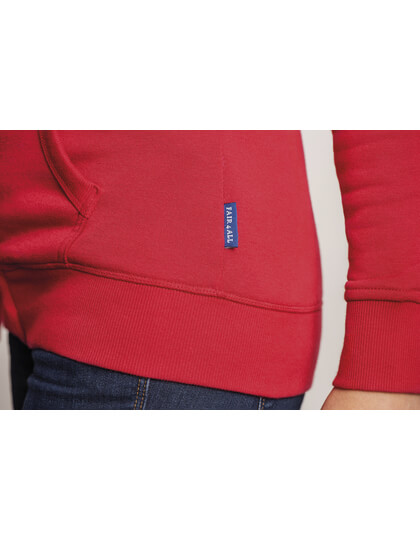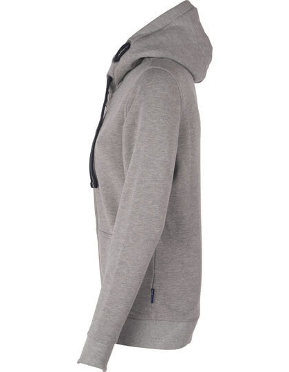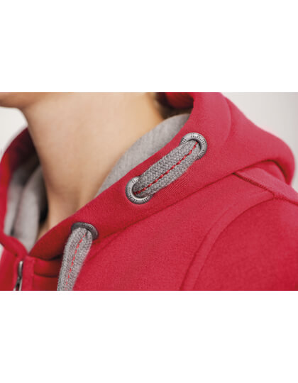 Vyrobené zo zvlášť mäkkej zmiešanej textílie z 80% bavlny a 20% polyesteru. Módny moderný strih. Vnútri kefovaná. Kapucňa s kontrastnou podšívkou. Plochá, vyšívaná kontrastná sťahovacia šnúrka so stredom. 3 kovové pútka HRM na každej