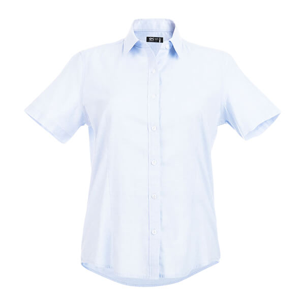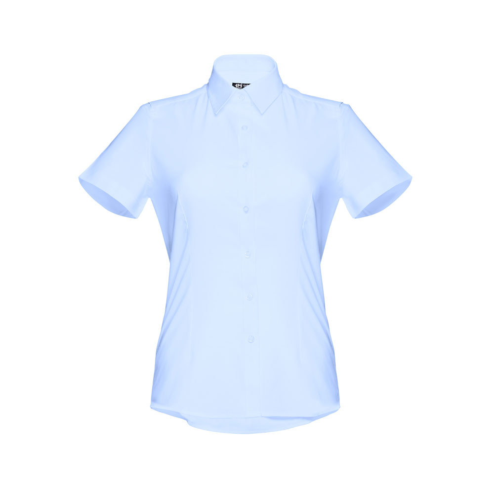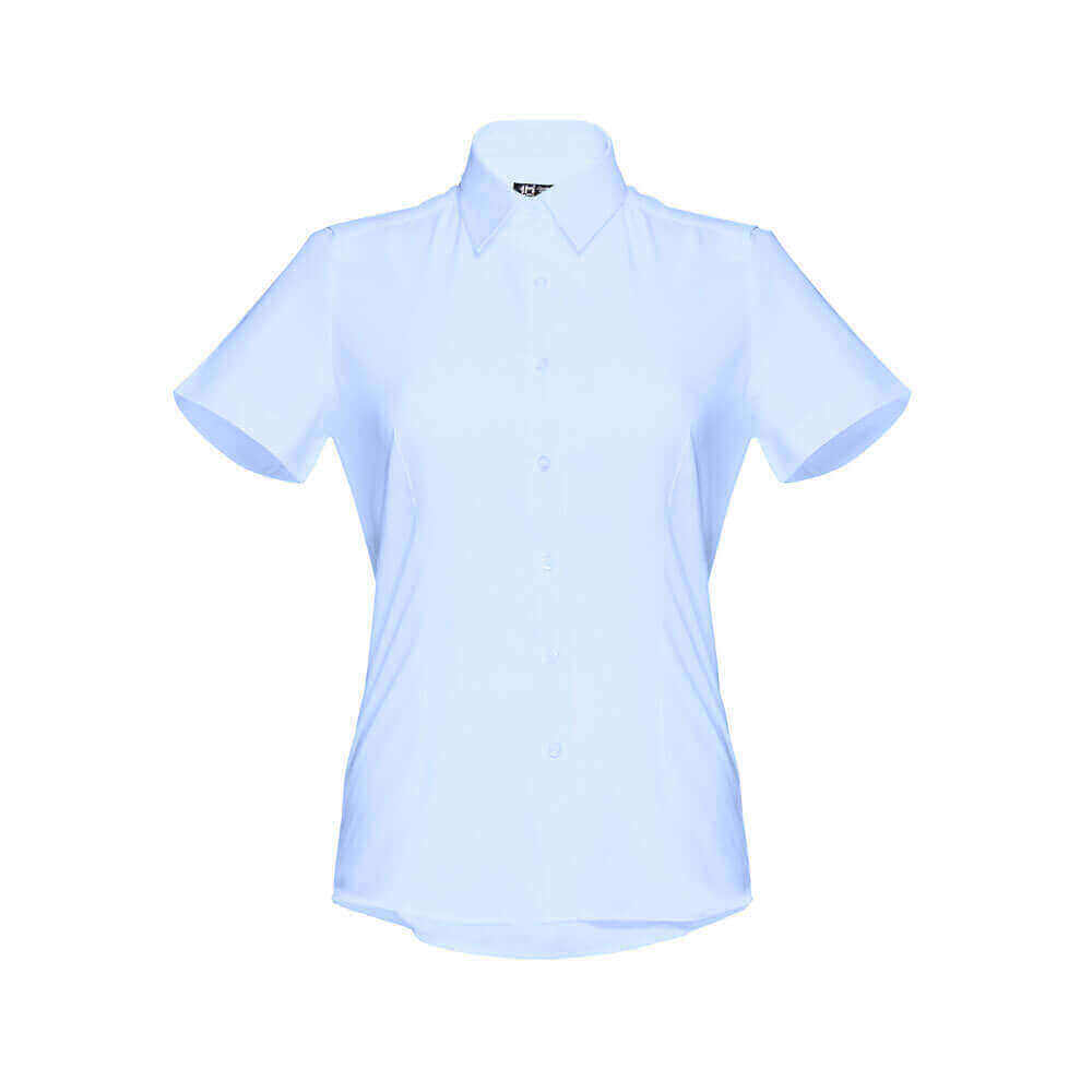 Dámska oxfordská košeľa zo 70% bavlny a 30% polyesteru (130 g/m²). Krátky rukáv. Priliehavý strih. Léga so 7 perlovými gombíkmi. 2 záševky na zadnom a prednom diele. Veľkosti: S, M, L, XL, XXL