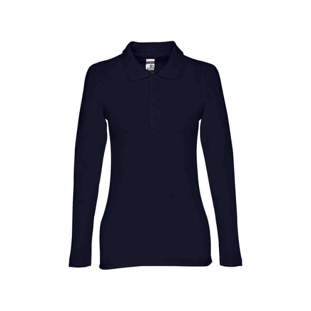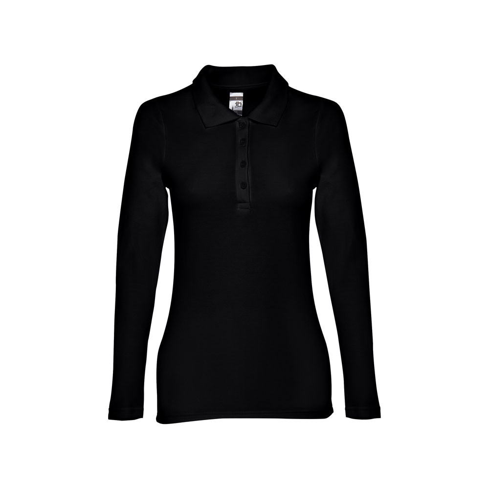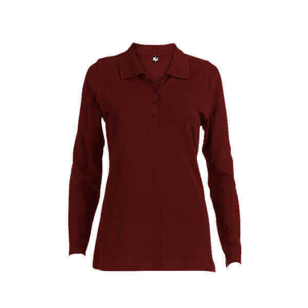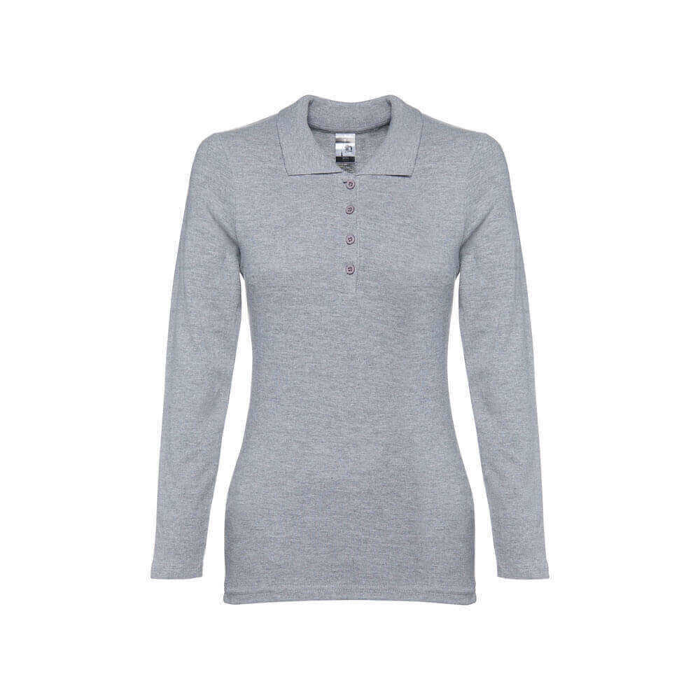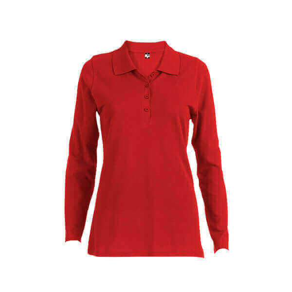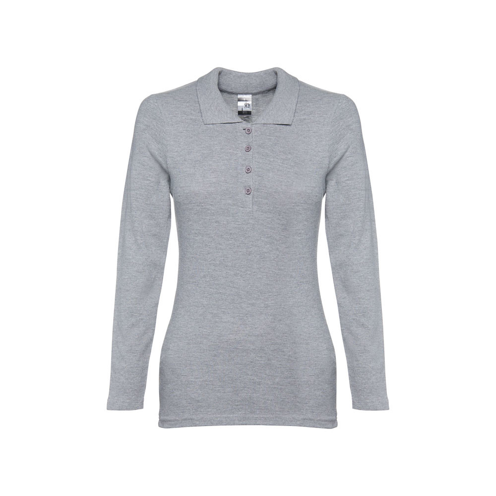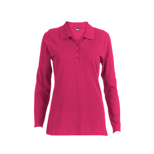 Dámska polokošeľa s dlhým rukávom zo 100% bavlneného piké (210 g/m²). Farba 83: 85% bavlna / 15% viskóza. Rebrovaný golier a rukávy, rebrovaná výstuž na golieri a vystužená léga so 4 farebnými gombíkmi. Spodná časť s bočnými rozparkami. Náhradný gombík vo vnútornom šve. Strihané a zošité. Veľkosti: S, M, L, XL, XXL
