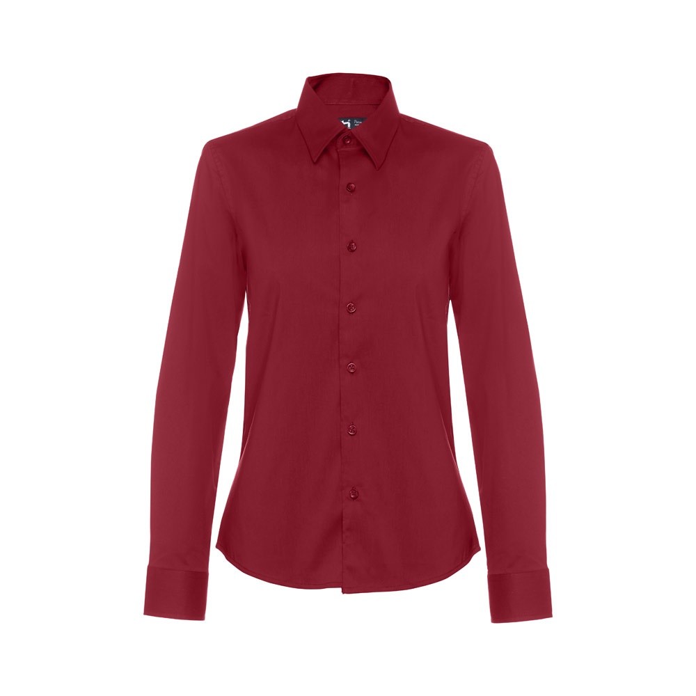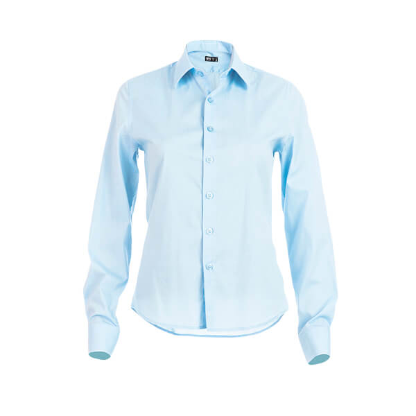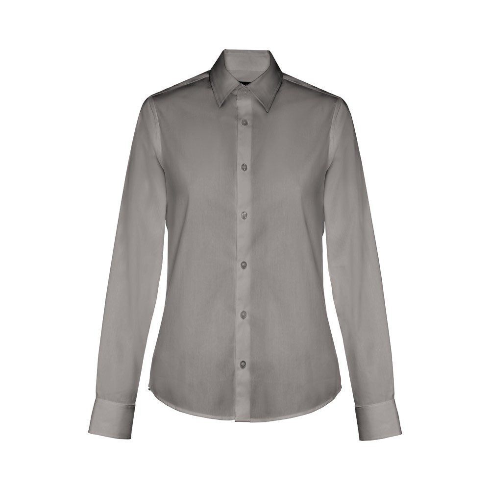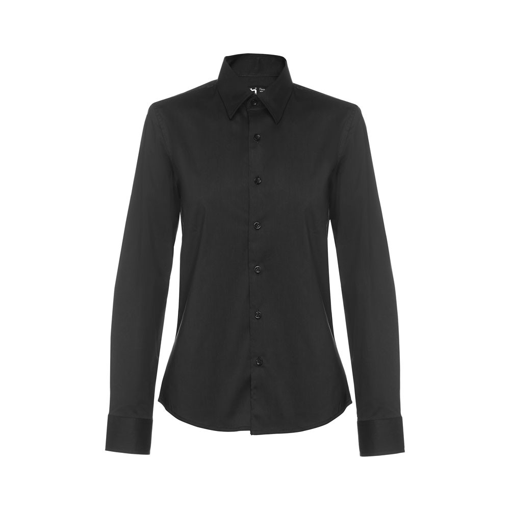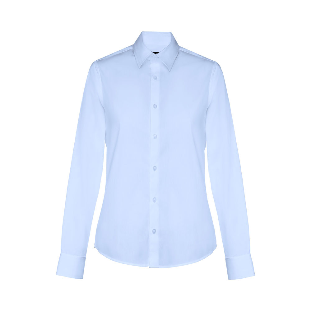 Dámska popelínová košeľa vyrobená z 68% bavlny, 28% polyamidu a 4% elastanu (115 g/m²). Dlhý rukáv. Priliehavý strih. Léga so 7 farebnými gombíkmi. Nastaviteľné manžety s 2 gombíkmi. 2 záševky na zadnom diele. Veľkosti: S, M, L, XL, XXL