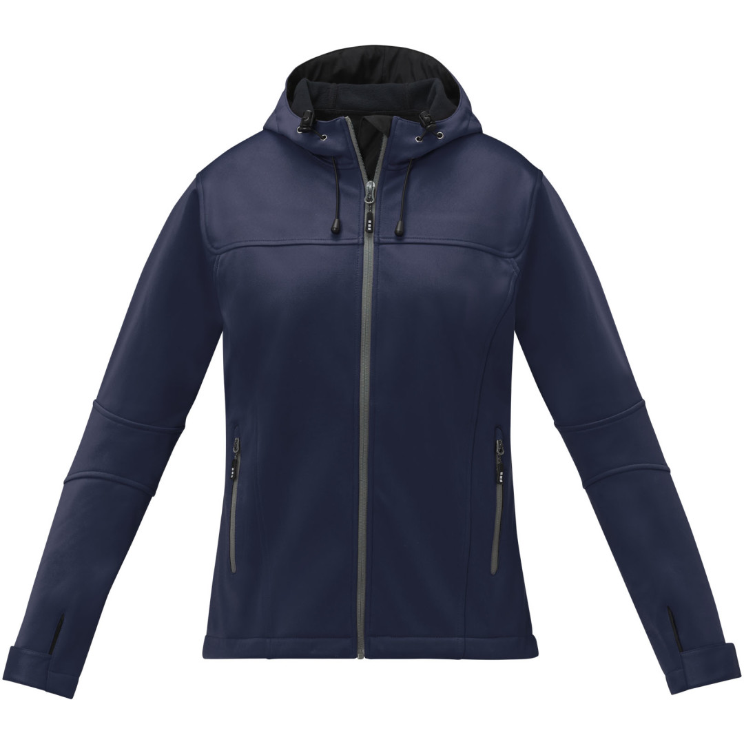 Vodeodolnosť 3000 mm a priedušnosť 3000 g/m². Trojvrstvové lepené: Džersej, TPU, Fleece. Spustený zadný lem. Tvarované švy a zúžený pás pre zoštíhľujúci fit. Elastická sťahovacia šnúrka s nastaviteľným zámkom šnúrky. Nastaviteľné manžety so zapínaním na suchý zips. Predné vrecká so zipsami. Vrecko na rukáve so zipsom. Stredový predný kontrastný otočný zips. Potlač štítku technológiou heat transfer pre väčšie pohodlie.