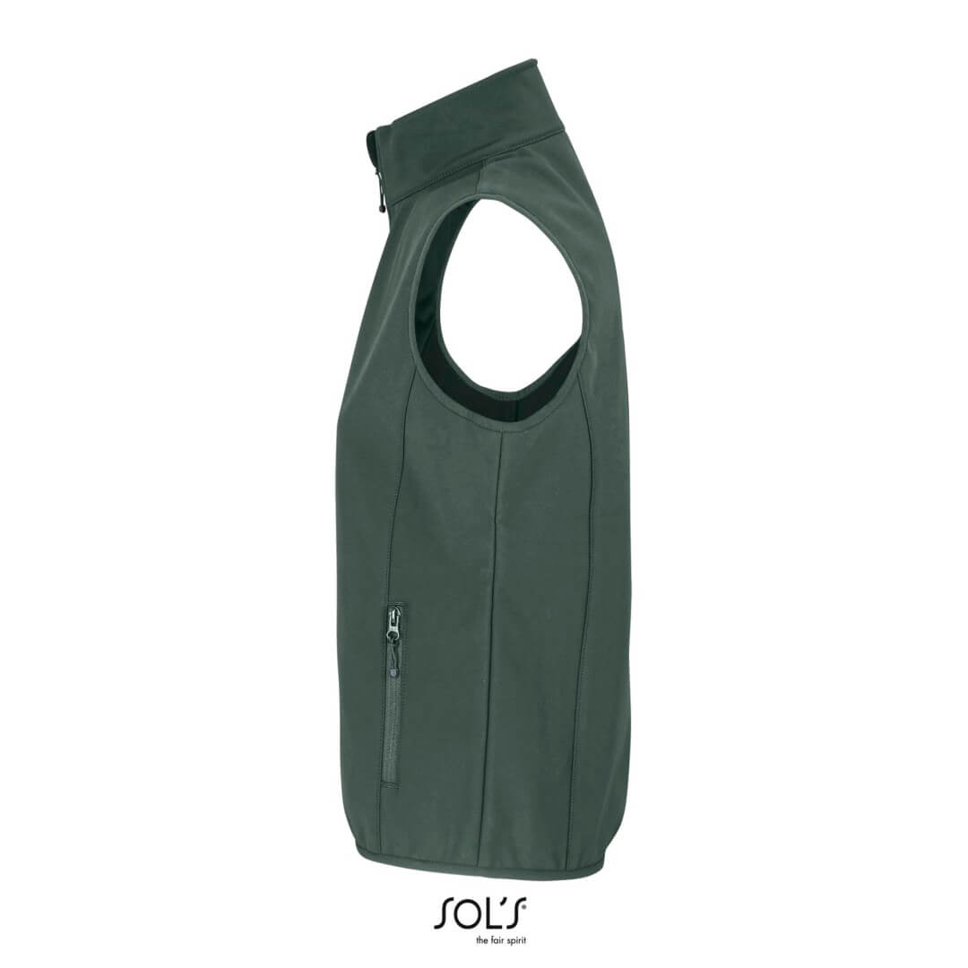 Recyklovaný polyester / elastan – 3 vrstvy, vnútorný flís: 100% polyester | Udržateľná tkanina | Softshell 270 | Pohodlný strih | Otváranie na zips | 2 bočné vrecká a 1 vrecko na hrudi so zipsom | Kontrastné zipsy | Elastický šikmý strih v prieramkoch a na leme | Odtrhávací štítok