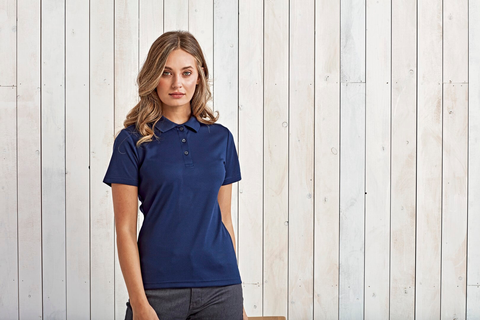 Recyklovaný polyester zo spotrebiteľských plastov | Polyesterová priadza recyklovaná technológiou spun-dyed | Rebrovaný golier | Trojknoflíková léga | Bočné prieduchy, priedušné | Odvádzanie vlhkosti | Vynikajúca stálosť farieb voči UV žiareniu | Proces farbenia šetrný k životnému prostrediu s nižšou spotrebou vody a menej chemikáliami a nižšími emisiami CO2