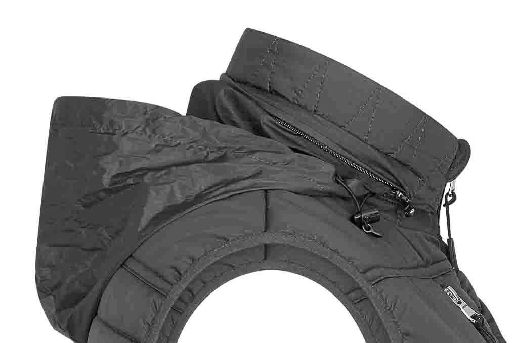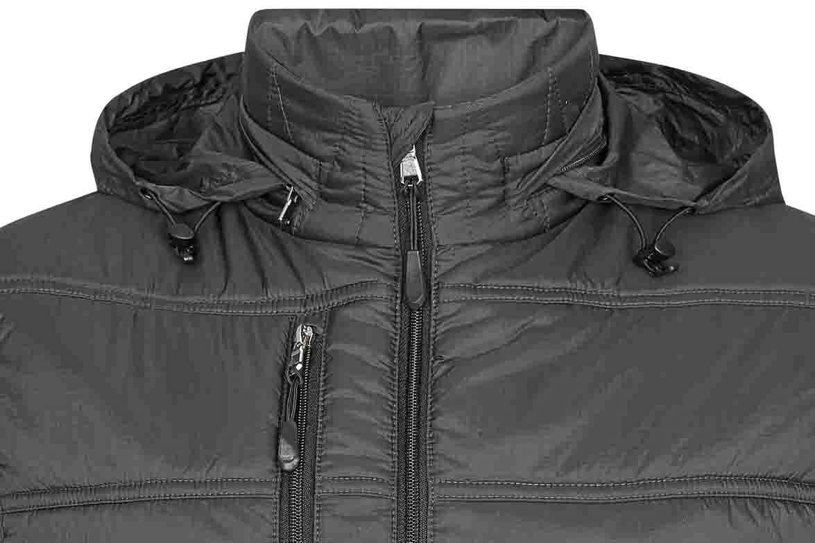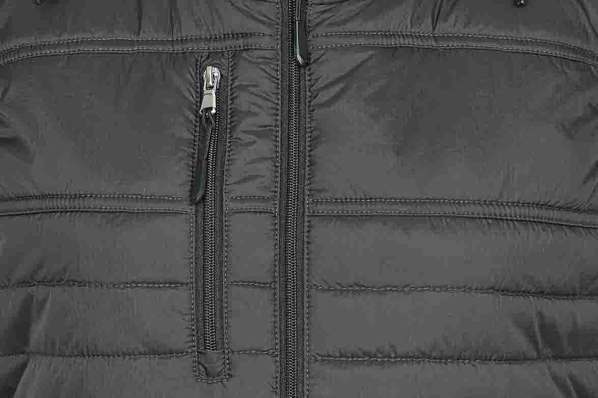 Klasický vzhľad | Vyrobené z veľmi ľahkého, mäkkého a robustného materiálu | Priedušná a vodeodolná | Kapucňa integrovaná v golieri so zipsom | Dve bočné vrecká a jedno náprsné vrecko na pravej strane, každé s kontrastným zipsom | Dve vnútorné vrecká a upravené vrecko na vnútornej strane vľavo | Široký prešívaný povrch na hrudi | Bez štítkov