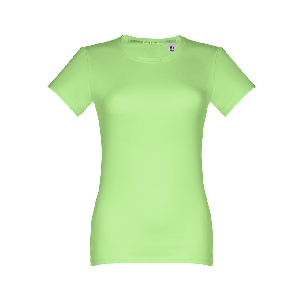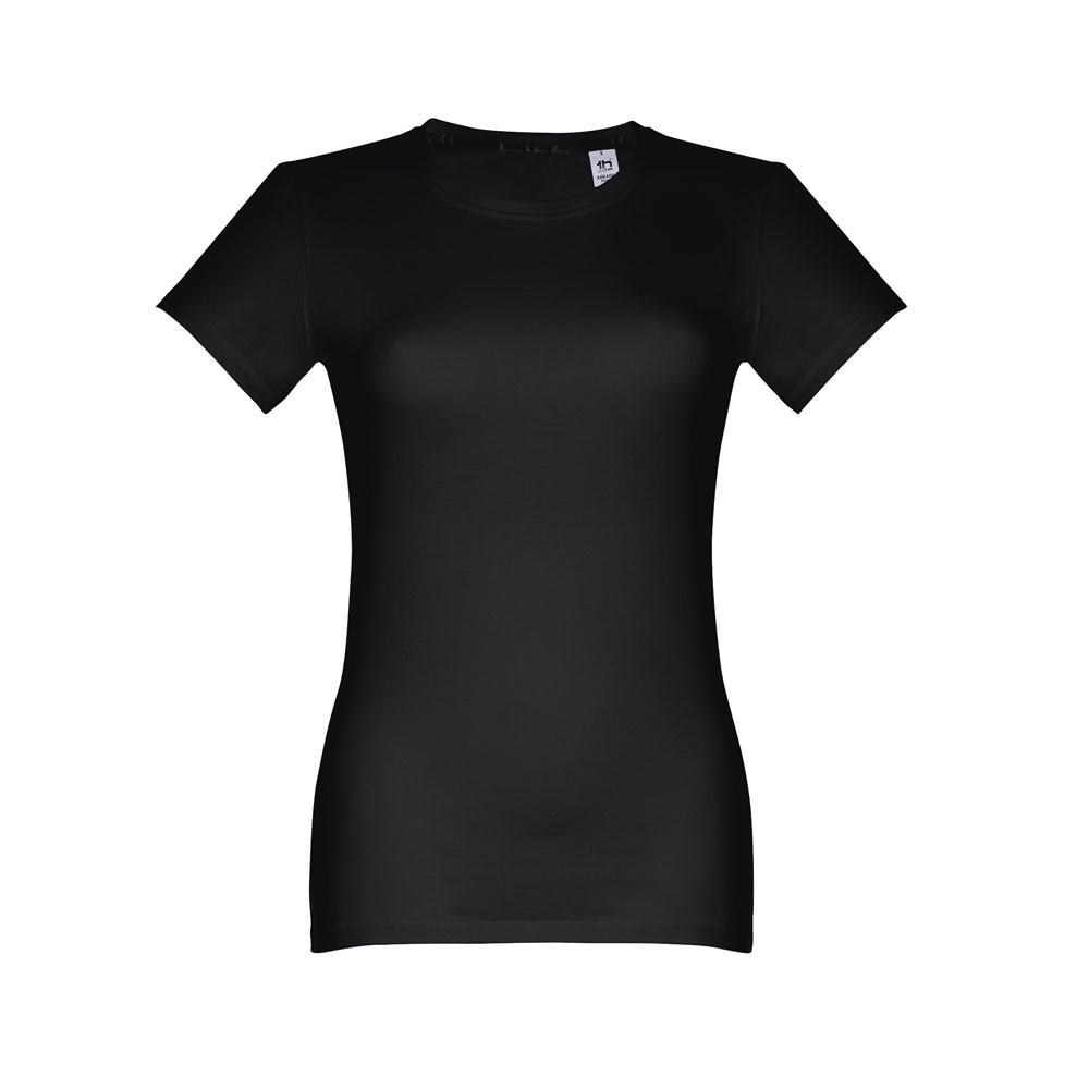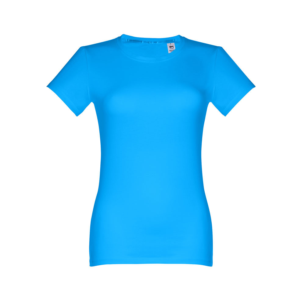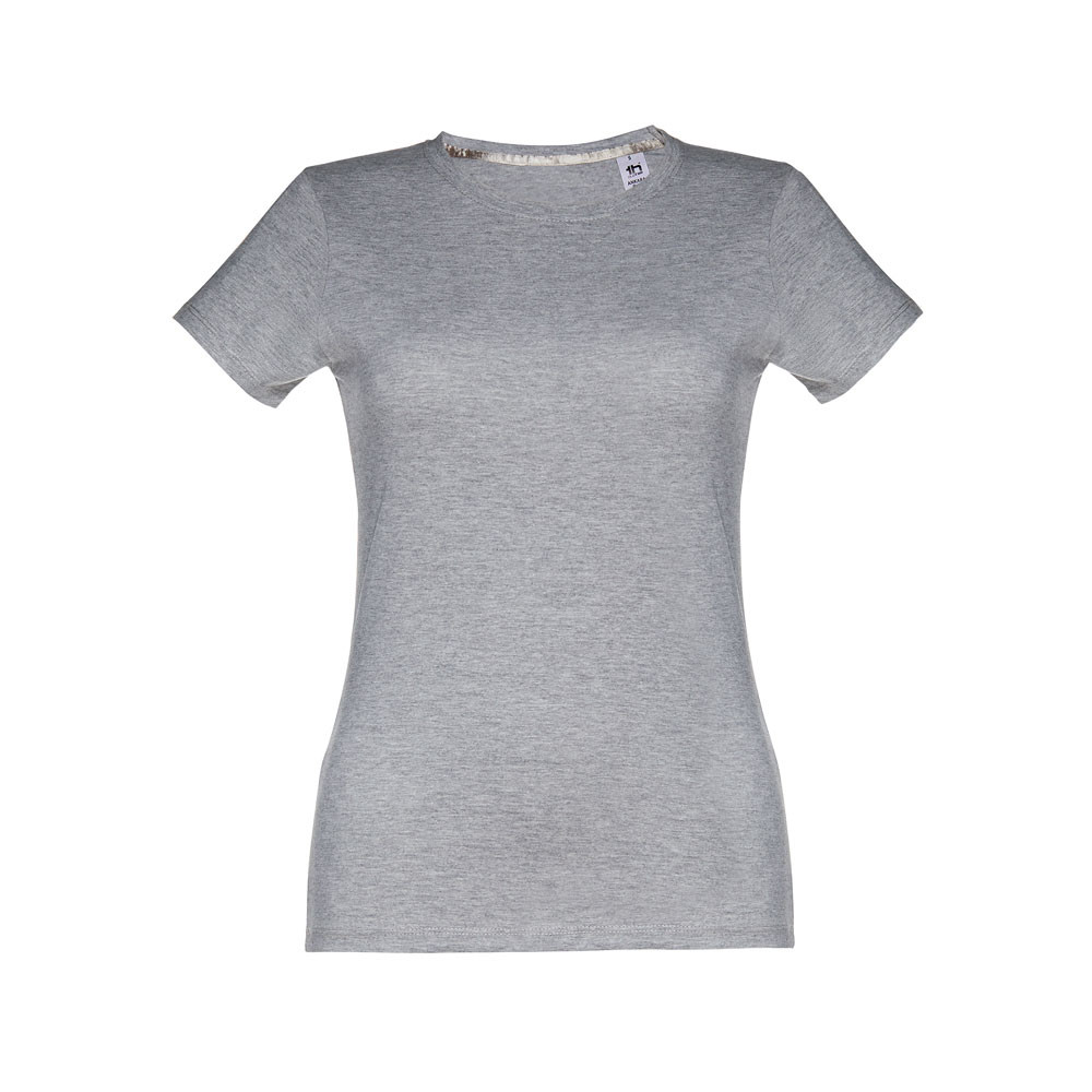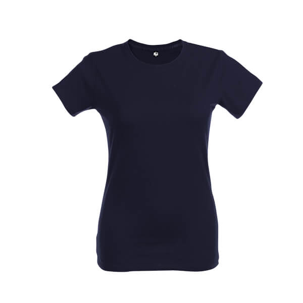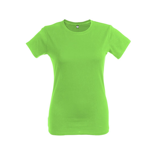 Dámske džersejové tričko priliehavého strihu zo 100% bavlny (190 g/m²). Farba 83: 90% bavlna / 10% viskóza. Tenký džersejový golier so saténovým rebrovaním. Dvojité prešitie na rukávoch a spodnom leme. Strihané a zošité. Veľkosti: S, M, L, XL, XXL