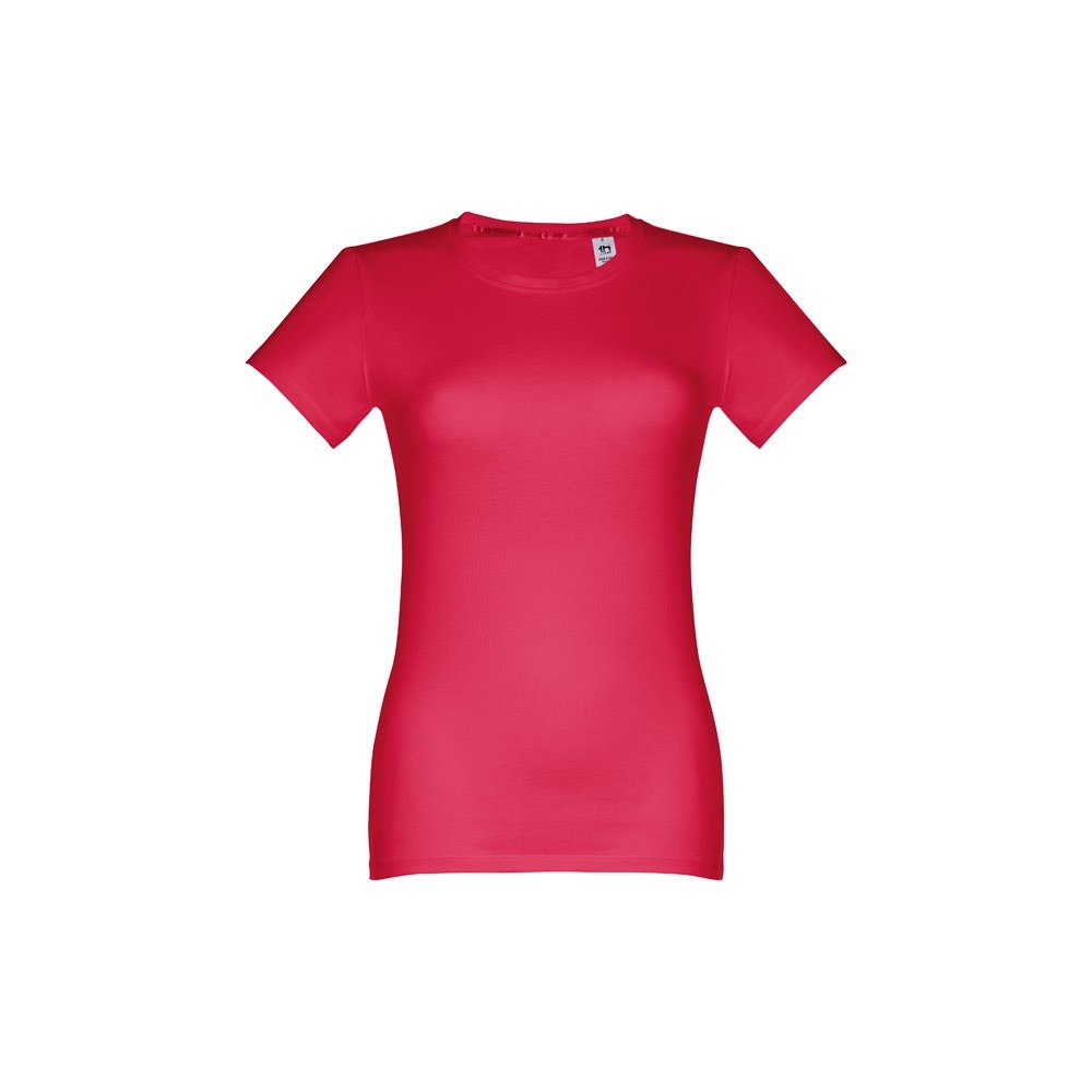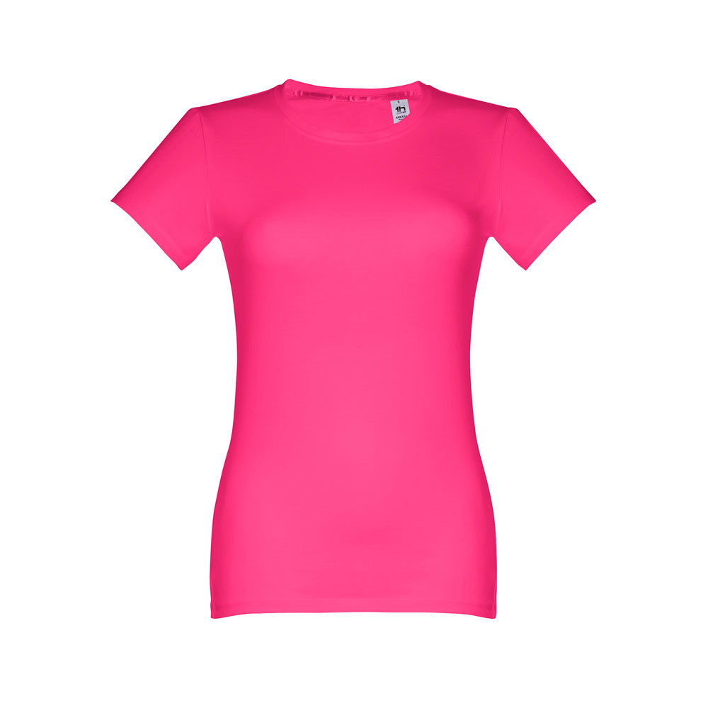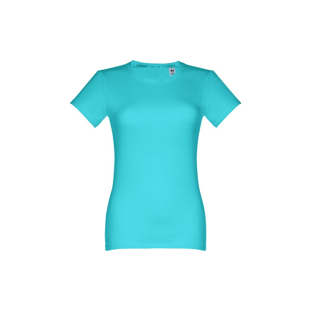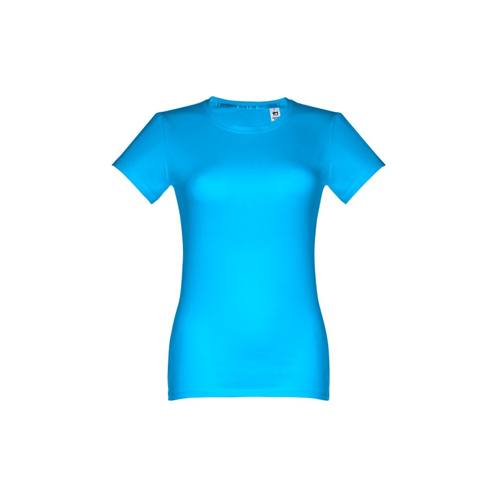 Dámske džersejové tričko priliehavého strihu zo 100% bavlny (190 g/m²). Farba 83: 90% bavlna / 10% viskóza. Tenký džersejový golier so saténovým rebrovaním. Dvojité prešitie na rukávoch a spodnom leme. Strihané a zošité. Veľkosti: S, M, L, XL, XXL