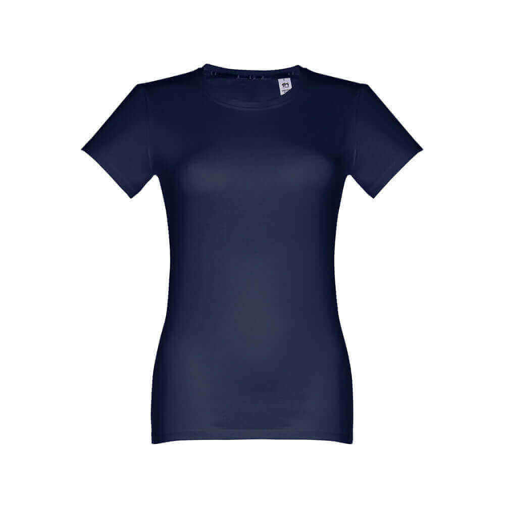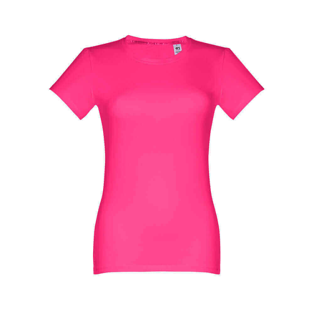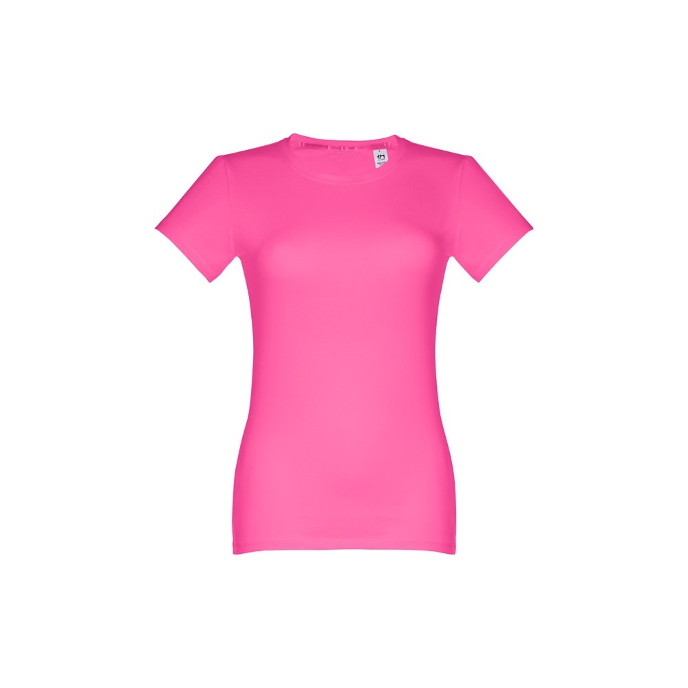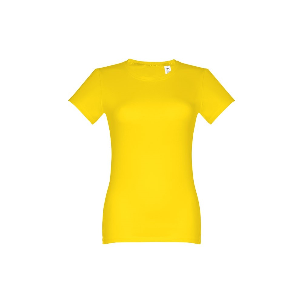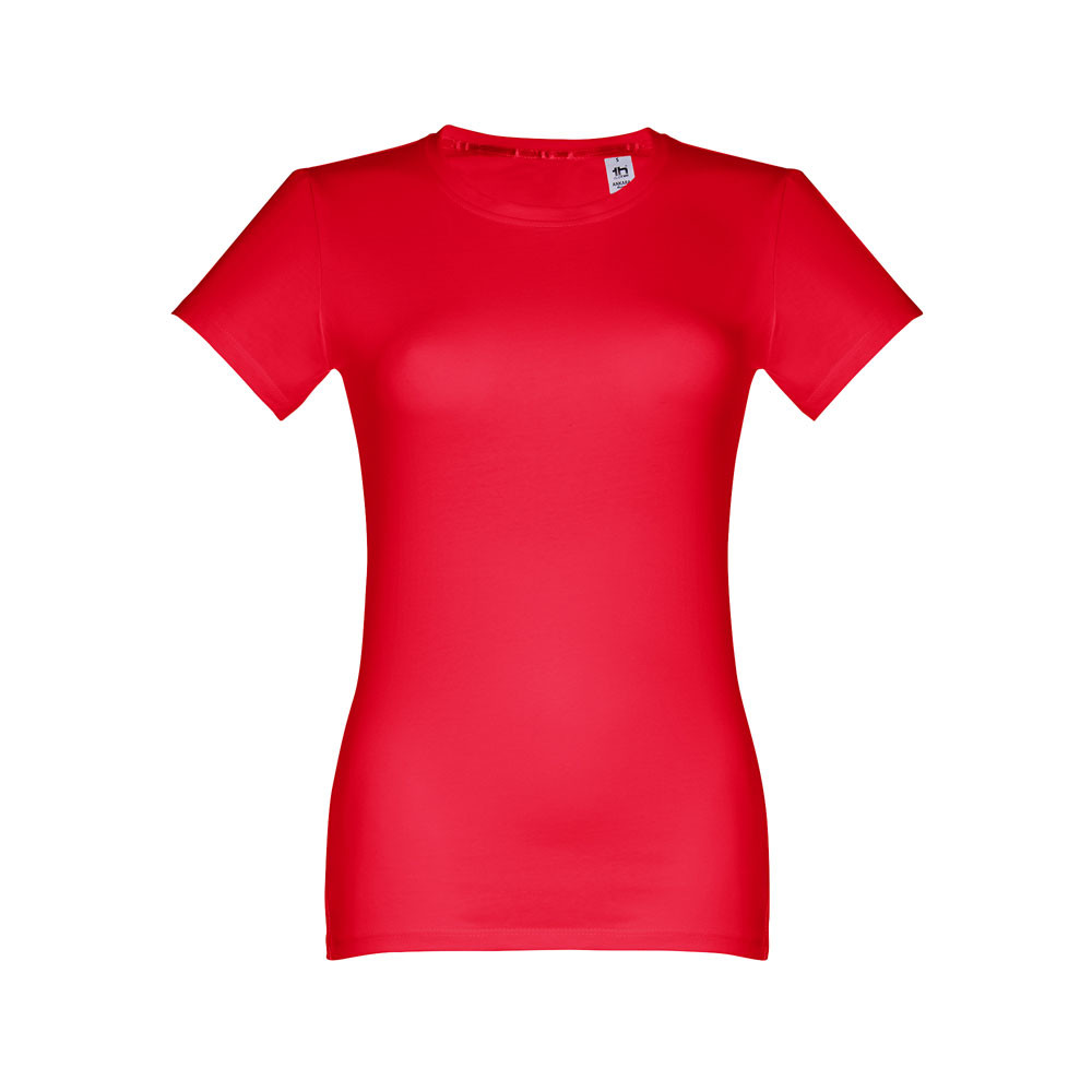 Dámske džersejové tričko priliehavého strihu zo 100% bavlny (190 g/m²). Farba 83: 90% bavlna / 10% viskóza. Tenký džersejový golier so saténovým rebrovaním. Dvojité prešitie na rukávoch a spodnom leme. Strihané a zošité. Veľkosti: S, M, L, XL, XXL