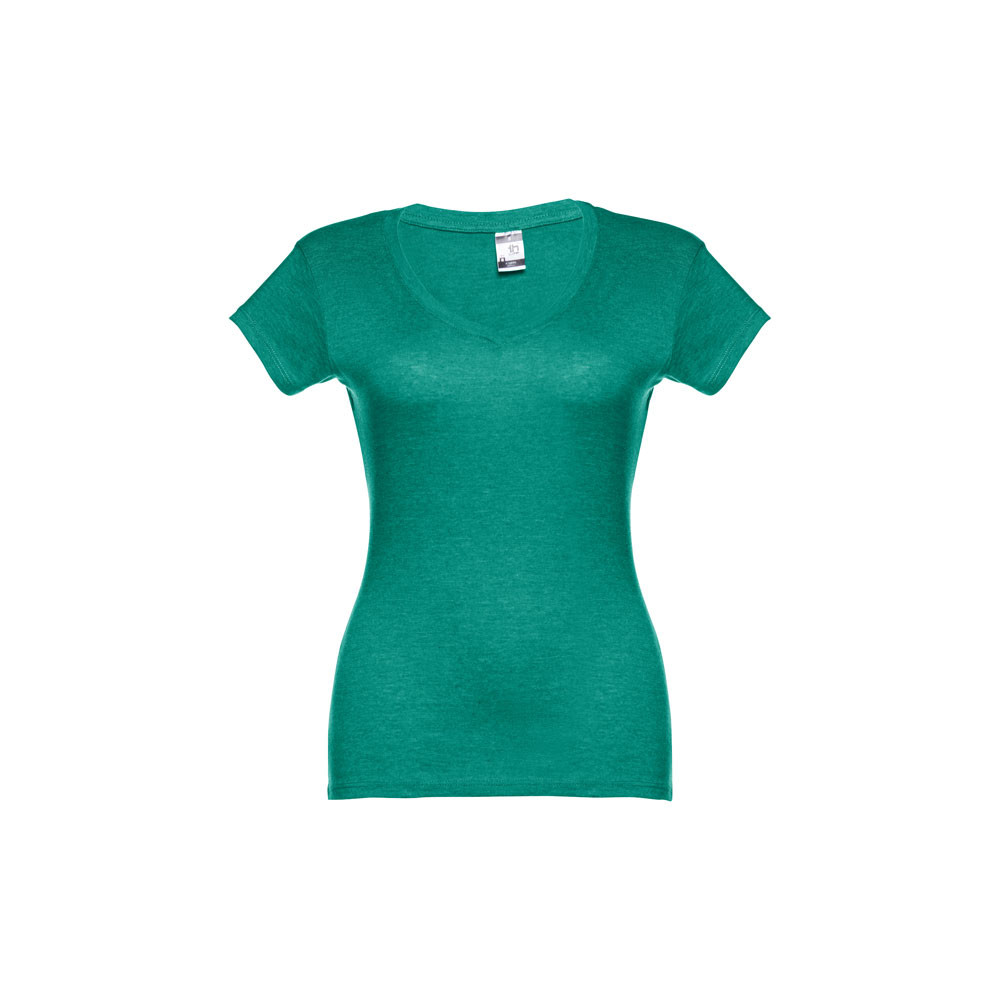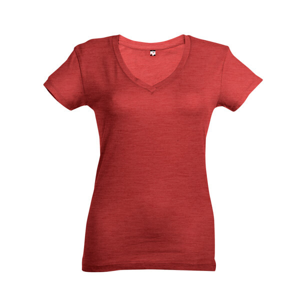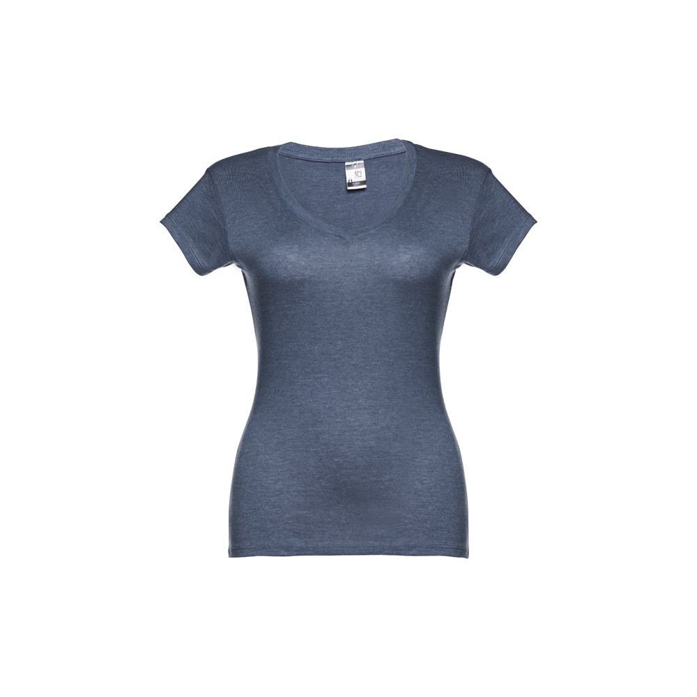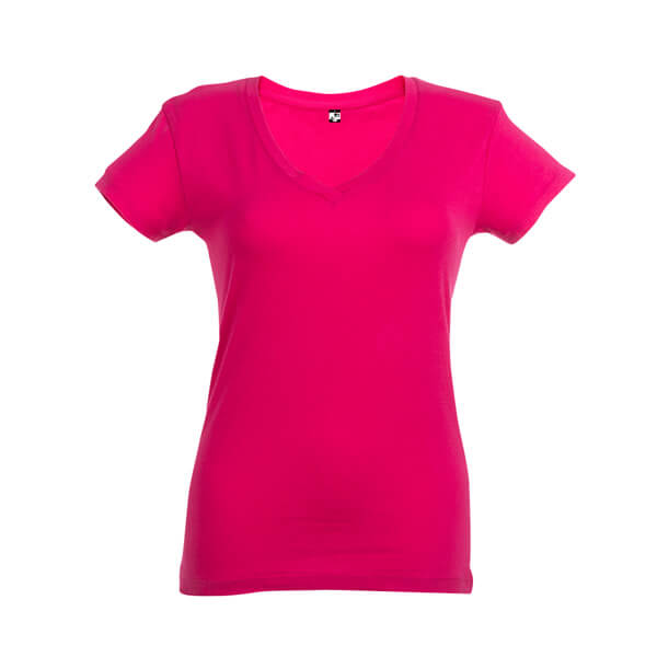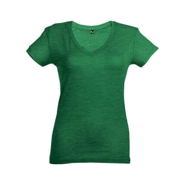 Dámske džersejové tričko priliehavého strihu zo 100% bavlny (150 g/m²). Farby 94, 95 a 99: 60% bavlna / 40% polyester. Tričko má krátky rukáv, výstrih do V s prekrytím, vystužené lemovanie a džersejový golier. Má dvojité prešitie na rukávoch a spodnom leme. Strihané a zošité. Veľkosti: S, M, L, XL, XXL