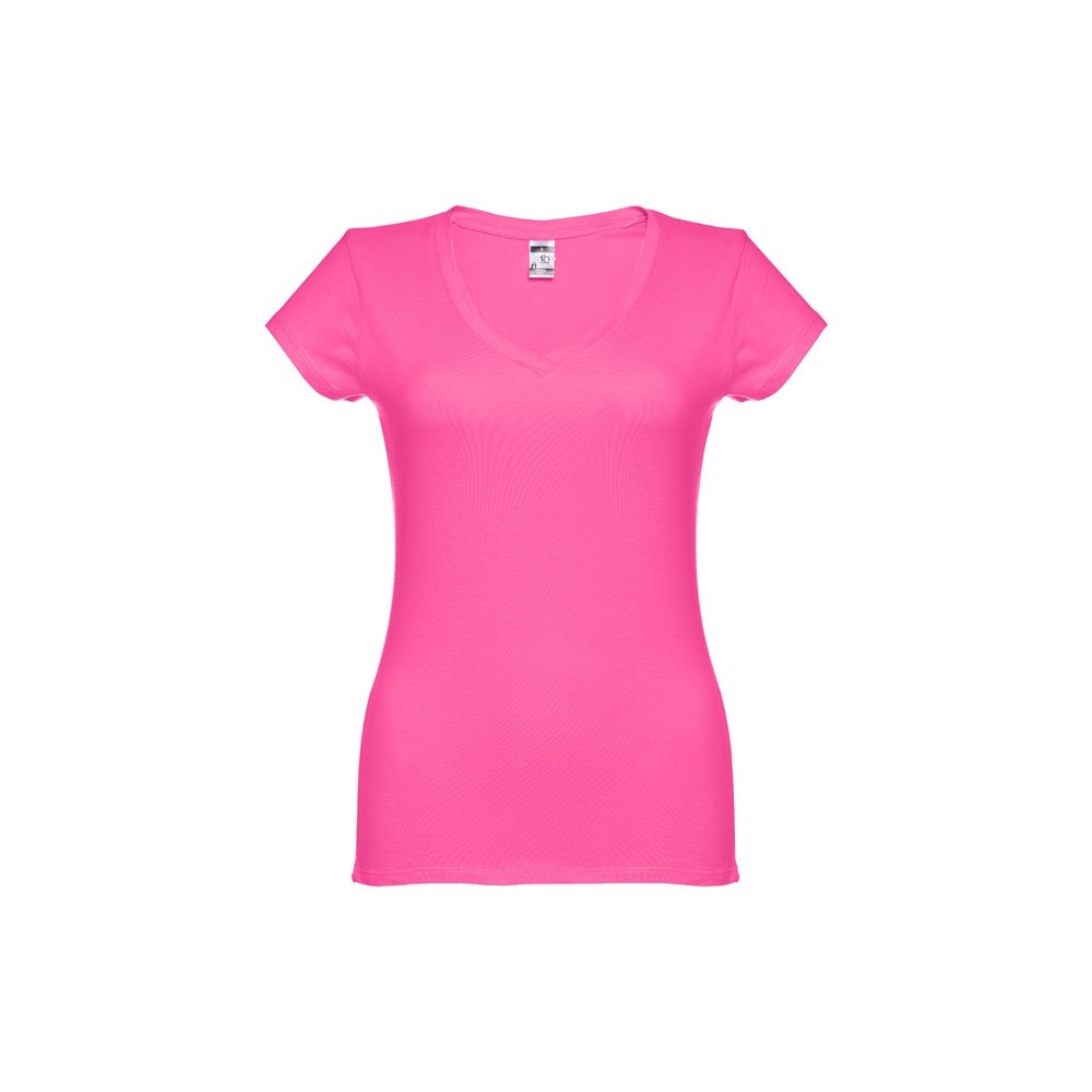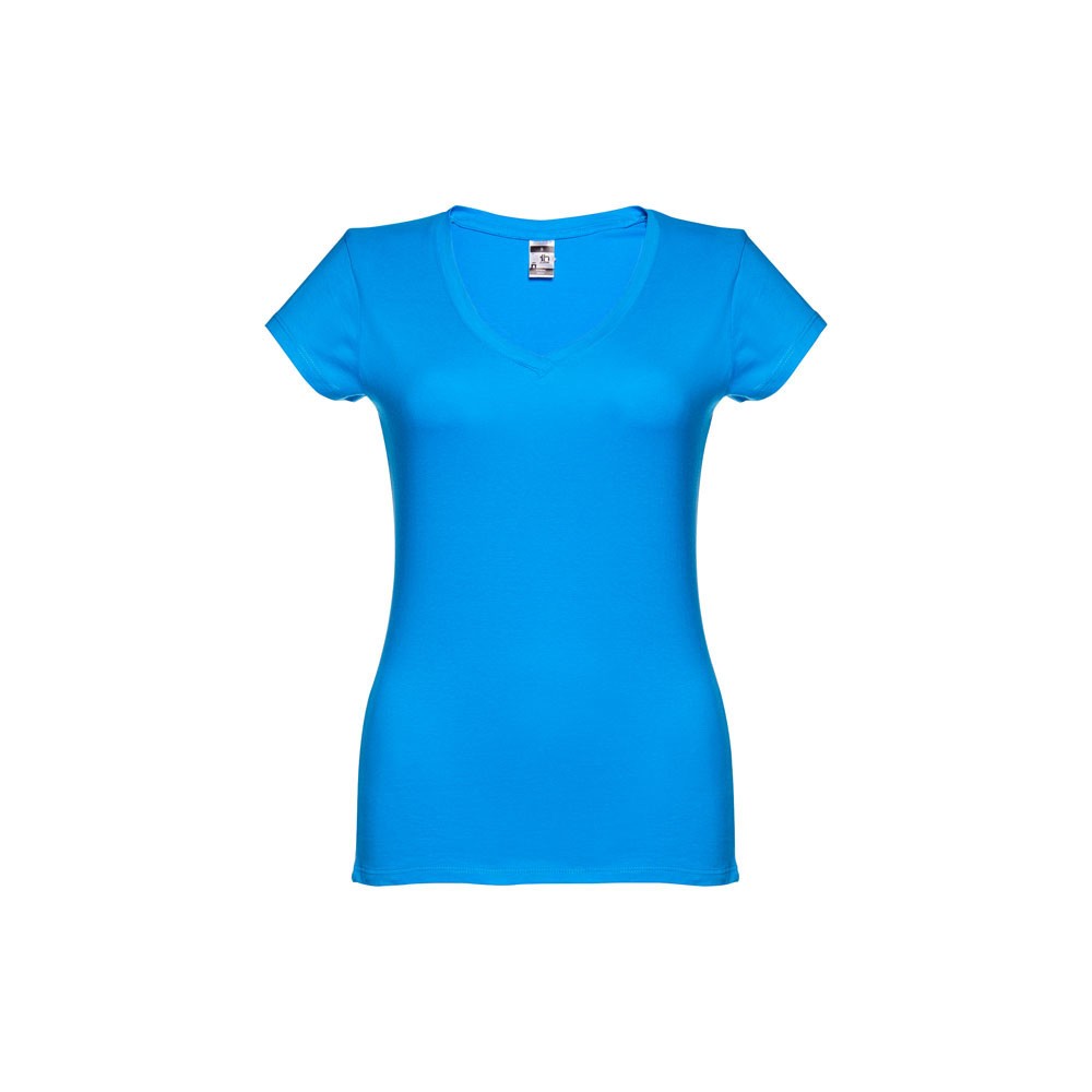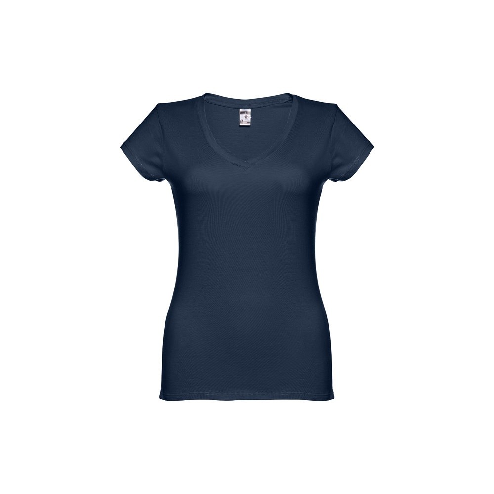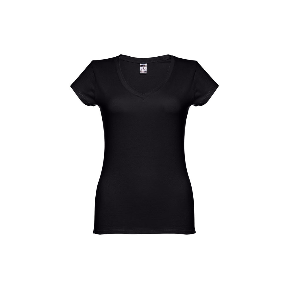 Dámske džersejové tričko priliehavého strihu zo 100% bavlny (150 g/m²). Farby 94, 95 a 99: 60% bavlna / 40% polyester. Tričko má krátky rukáv, výstrih do V s prekrytím, vystužené lemovanie a džersejový golier. Má dvojité prešitie na rukávoch a spodnom leme. Strihané a zošité. Veľkosti: S, M, L, XL, XXL