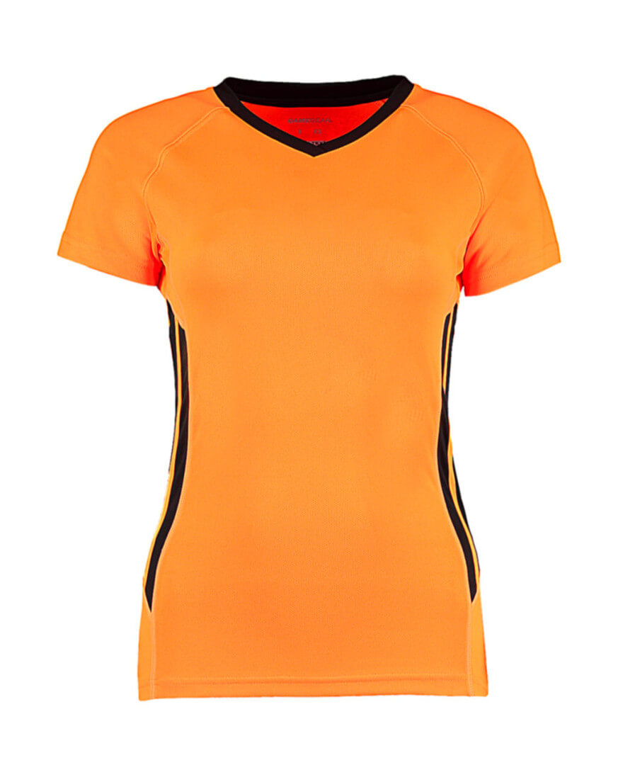·výstrih do V s okrajom v kontrastnej farbe ·gamegear®/cooltex® vytlačené na zadnej vnútornej strane krku ·bočné vložky v kontrastnej farbe ·dolný okraj vpredu rovný