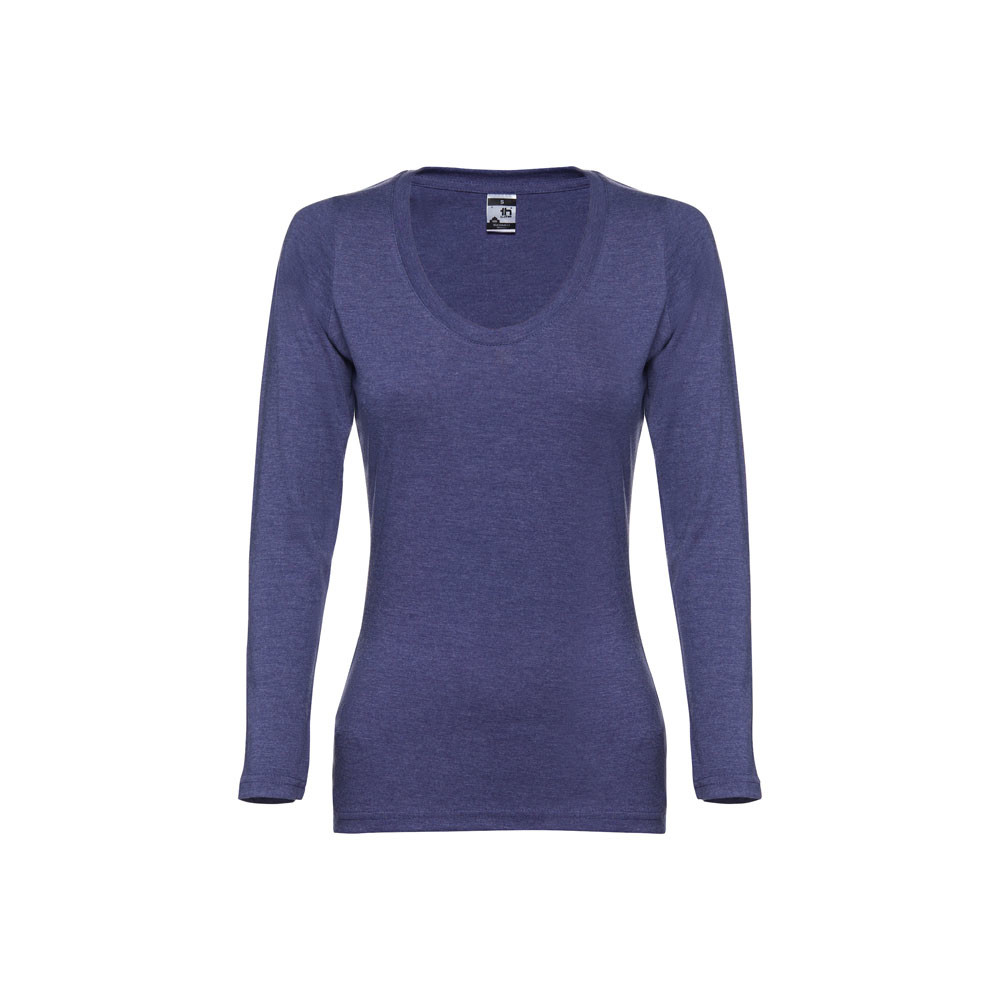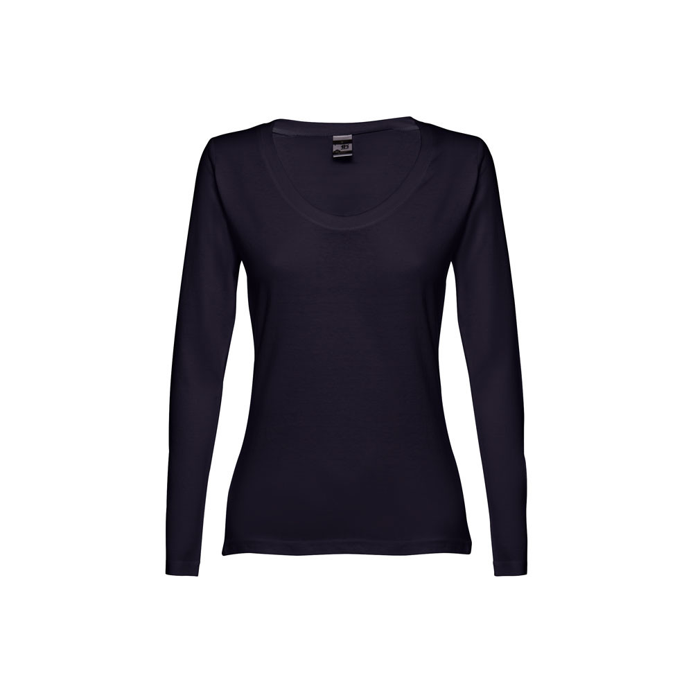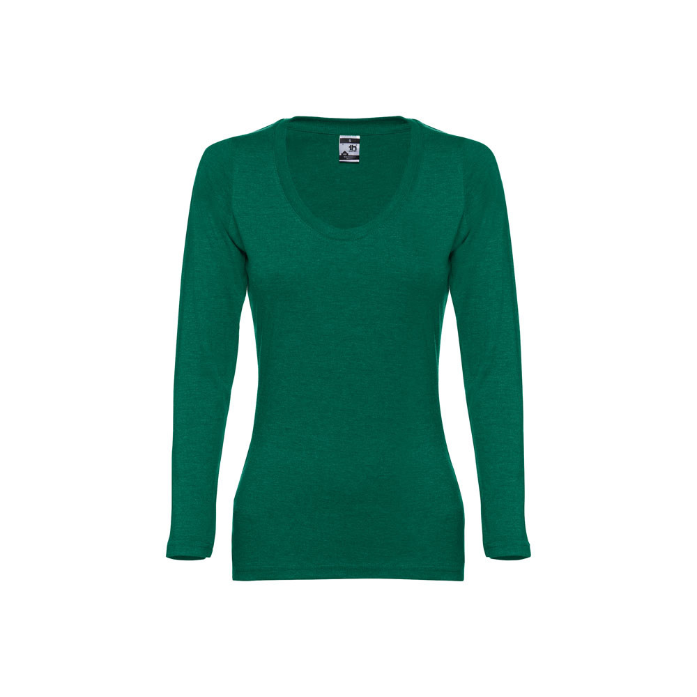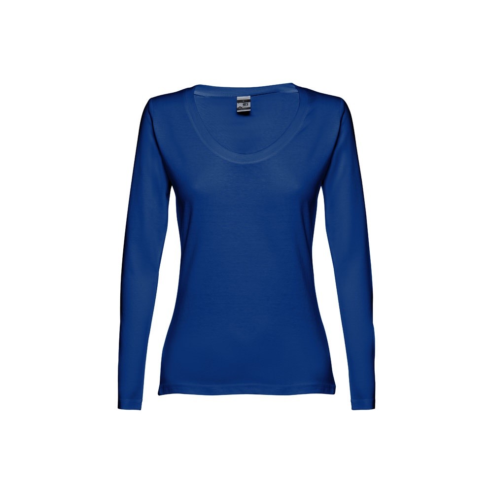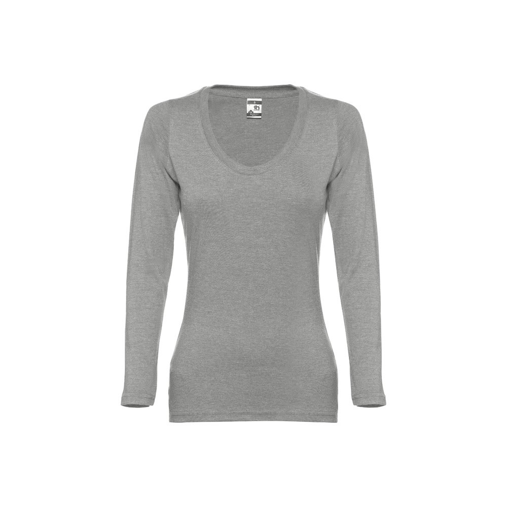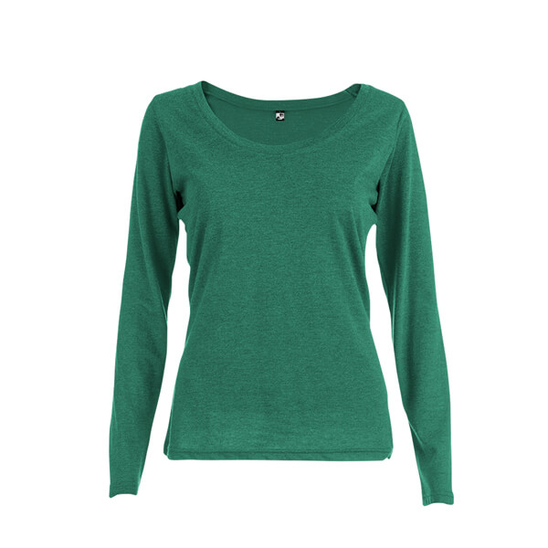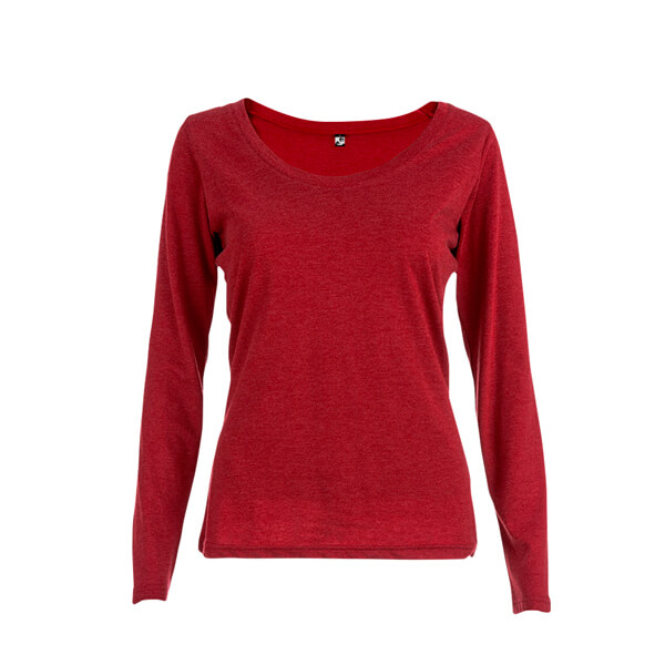 Dámske džersejové tričko s dlhým rukávom zo 100% bavlny (150 g/m²). Farby 94, 95 a 99: 60% bavlna / 40% polyester. Džersejový lem výstrihu. Dvojité prešitie na rukávoch a spodnom leme. Strihané a zošité. Veľkosti: S, M, L, XL, XXL