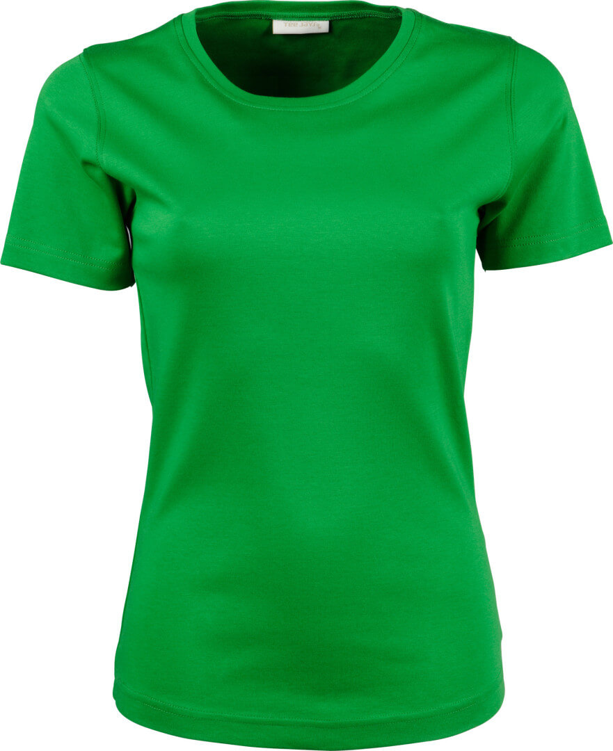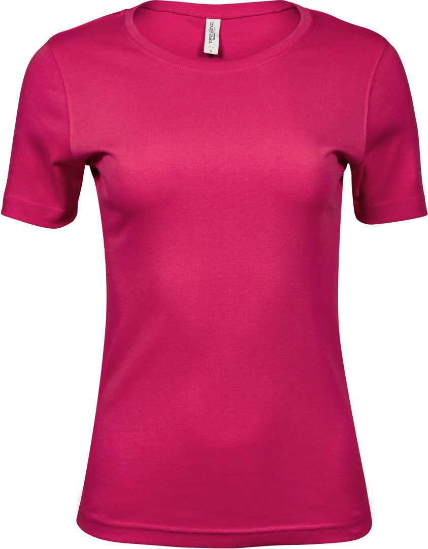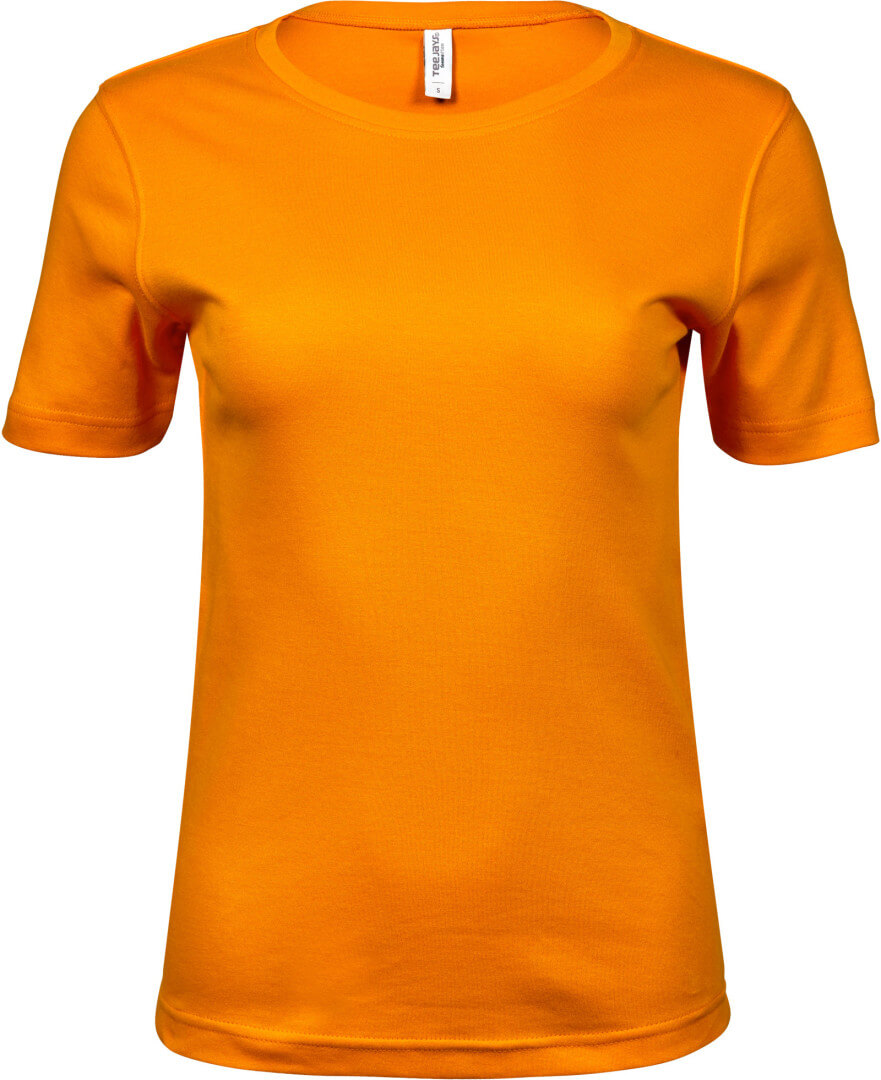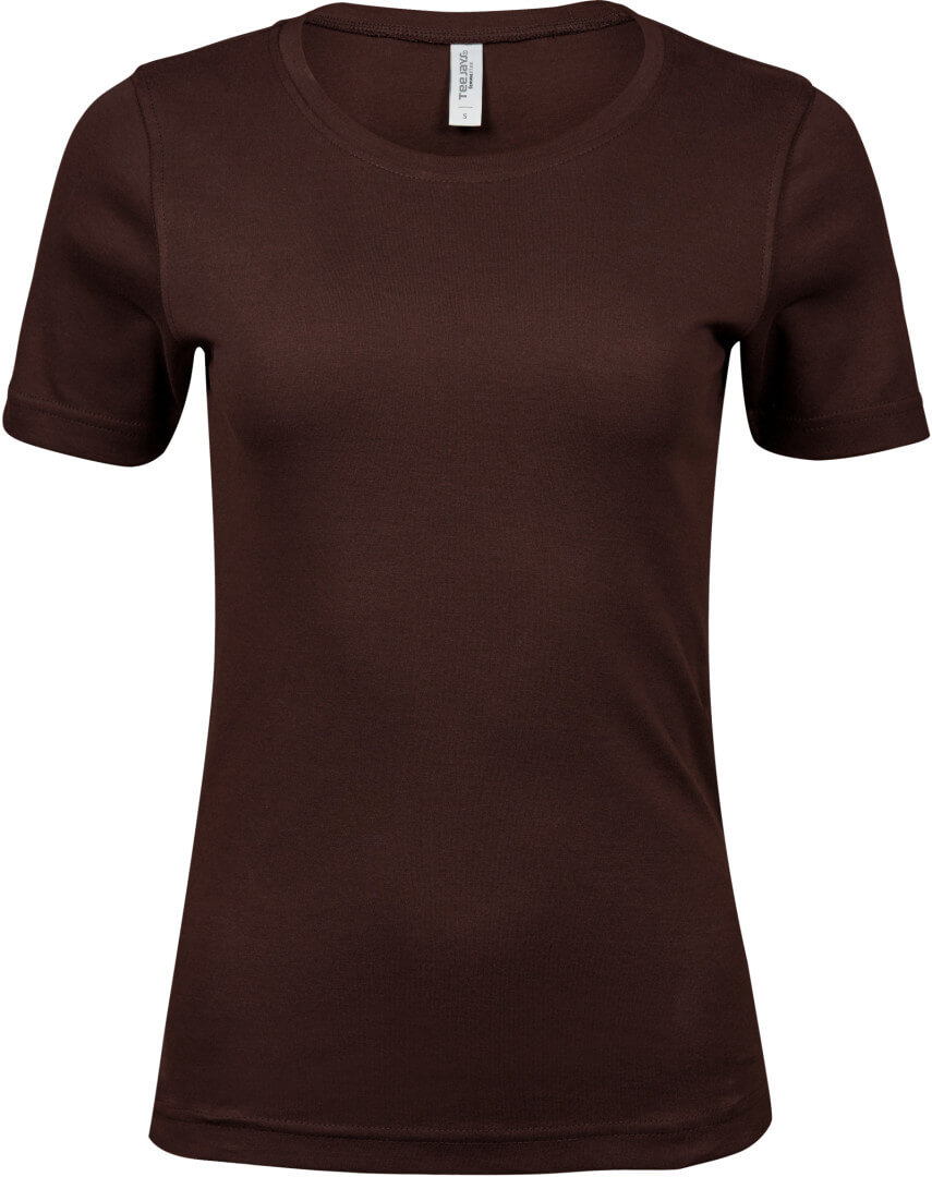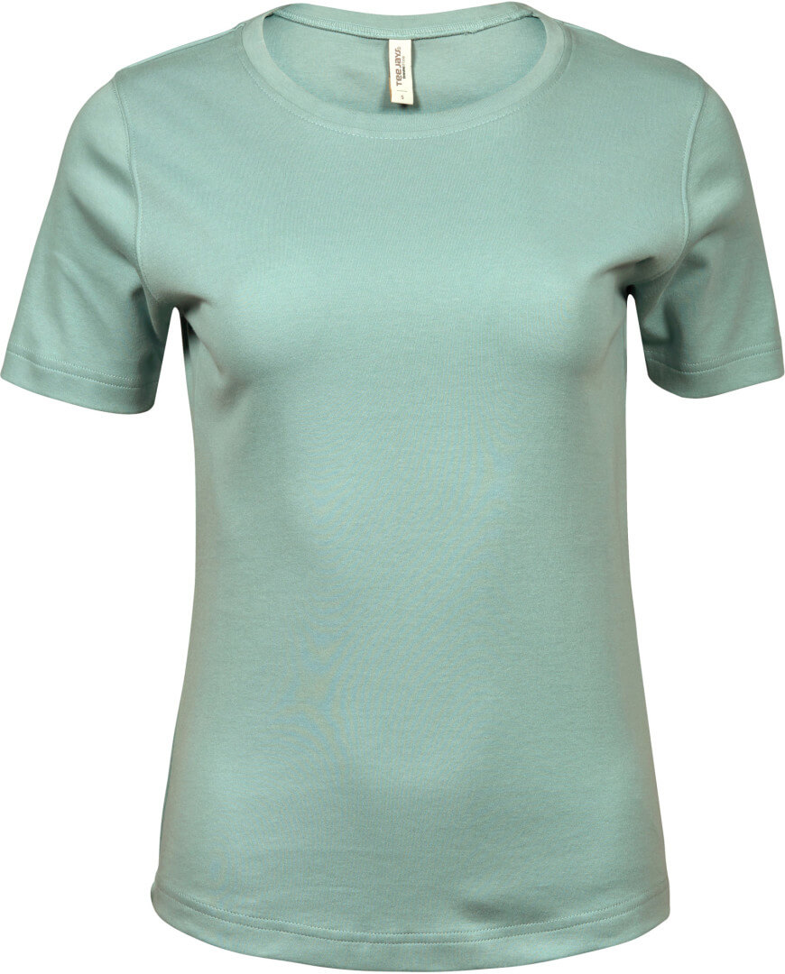 Vypasovaný strih, úzko lemovaný kulatý výstrih s elastanom, dvojité švy, vysoko kvalitný interlock z bavlny s dlhými vláknami, právo v silikóne pre veľmi hladký dotek, pratelné na 60°
