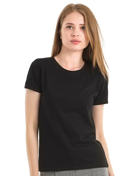 ·Single jersey ·malý rebrovaný lem okolo krku ·dvojité švy na rukávoch a na spodnom leme ·bočné švy