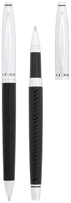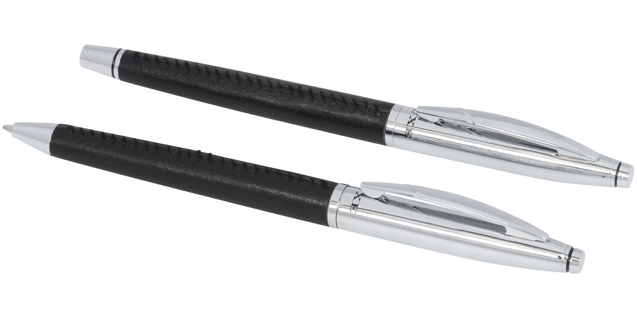 Darčeková sada guľôčkového pera Tombeau. Elegantná darčeková sada guľôčkového pera a rolleru, exkluzívny dizajn. Potiahnuté kožou, s kontrastným prešívaním v modernom štýle. Príslušenstvom je puzdro z imitácie kože pre dve...