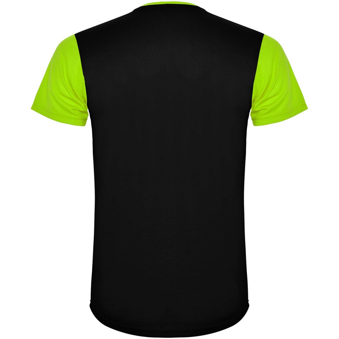 Ľahko schnúca, technická a priedušná látka. Okrúhly výstrih. Kombinácia dvoch polyesterových látok na chrbte a ramenách. Látka „vtáčie oko“ vpredu a priedušná 3D sieťovina na chrbte. Látka pripravená na absorpciu vlhkosti. Ozdobný kľukatý zadný steh na bokoch a na ramenách. Zadný vzor je mierne dlhší. Odnímateľný štítok.