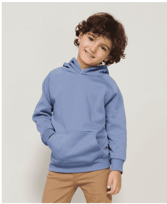 Rovný strih, kapucňa s podšívkou z jednoduchého džerseja, polmesiačikovitá podsádka na krku, krčná lemovka, raglánový rukáv, 2x2 rebrovaný úplet na golieri, manžetách a leme, klokanie vrecko, zdrsnená vnútorná strana, neutrálny veľkostný štítok