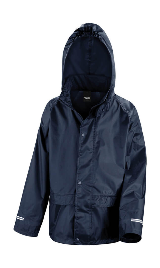·100% polyester s vrstvou PVC ·integrovaná elastická kapucňa ·zapínanie na zips, s prekrytím na zapínanie na cvoky ·vzadu sieťka pre ventiláciu ·2 predné vrecká ·plne podlepené švy (vodotesné do 2000 mm) ·nastaviteľný sťahovací lem ·reflexná páska na manžetách, vnútorné elastické manžety ·vhodné pre priamu tlač a digitálnu transferovú tlač.