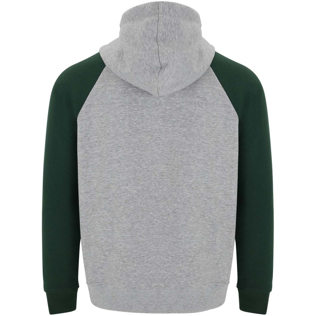 Dvojfarebná unisex mikina s kapucňou. Kapucňa so skríženým golierom a kovovými očkami. Kontrastná vnútorná kapucňa, sťahovacia šnúrka a raglánové rukávy. Klokanie vrecko. Manžety a lem z elastanového rebrového úpletu 1 × 1. Odnímateľný štítok. Úplet česaný na rube. 50% bavlna, 50% polyester, 280 g/m2.