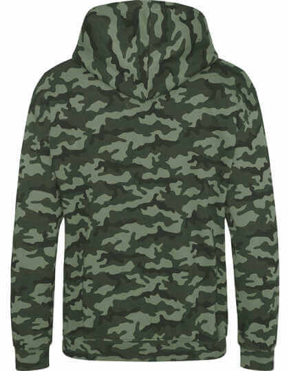 Detail dvojitého prešitia. Klasický kamuflážny design. Dvojplášťová kapucňa. Klokanie vrecko. Žiadne sťahovacie pásky. Česaný vnútorné fleece. Rebrované manžety a lem. Mäkká bavlnená poťahovaná tkanina vytvára ideálny tlačový povrch. Jednoduchý odtrhávací štítok.