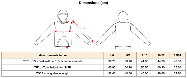 Podšitá kapucňa, vsadené rukávy, pletené manžety na rukávoch a leme, klokanie vrecko, zdrsnená vnútorná strana, prateľné na 40 °, nemožno sušiť v sušičke, nemožno chemicky čistiť.