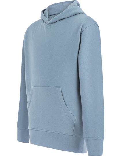 Obnovená bavlna / recyklovaný polyester. Flís s česanou rubovou stranou. Voľný strih unisex. Vsadené rukávy. Spadnuté ramená. Predĺžený lem - zaoblený krátky predný diel, dlhý zadný diel. Rebrovaný lem a manžety. Páska za krkom a podšívka kapucňa z jednoduchého džerseja. Vrecko klokanka. Tónované prešívanie. Žiadny štítok so značkou. Recyklovateľné vrecká s možnosťou opätovného uzavretia - vyrobené zo 100% recyklovaného plastu.
