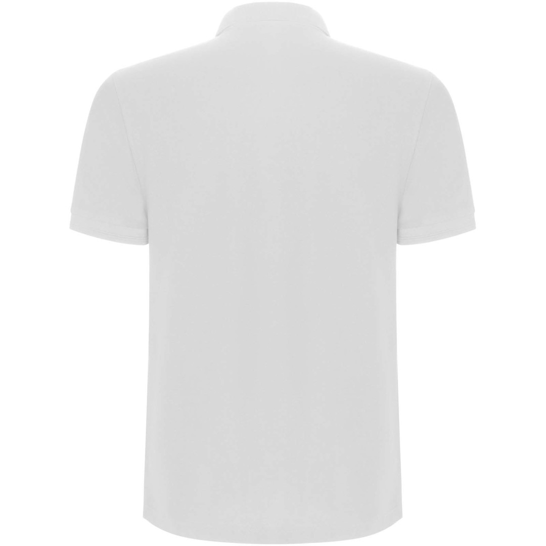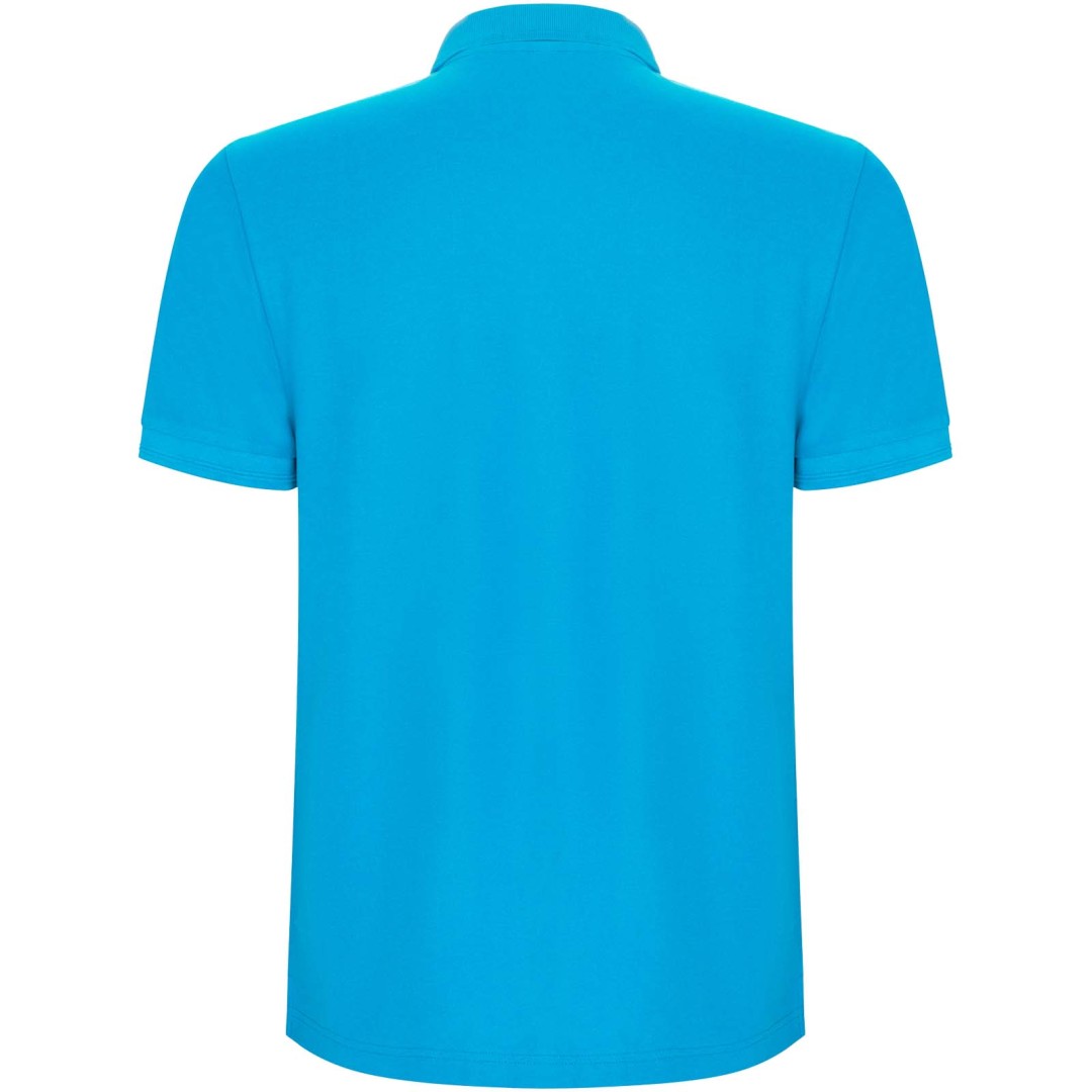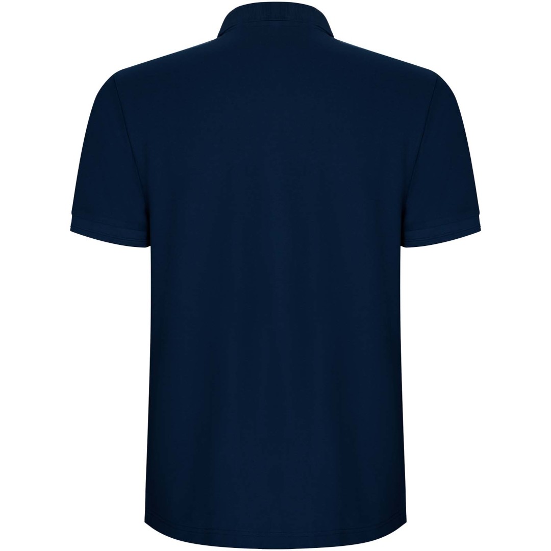 Polokošeľa s krátkym rukávom. Lemovanie goliera a rukávov z rebrovanej látky 1 × 1 s detailmi. Zapínanie na 3 gombíky. Zosilnené kryté švy v golieri. Bočné rázporky a voliteľné vrecko. Odnímateľný štítok. Ošetrenie proti žmolkovaniu.