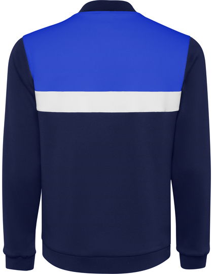 Športová bunda s predným zipsom | Na vnútornej strane interlock z česanej priadze | Bočné vrecká na zips | Golier, manžety a lem s rebrovaným stehom 1×1 | Asymetrická predná časť na ľavej strane hrudníka, špeciálne navrhnutá pre výšivku.