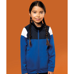 Materiál: 200g/m2, 100% polyester, interlock. Rovný strih, vsadka na hrudi a ramenách v kontrastnej farbe, stojatý golier s ochranou brady, raglánový rukáv, textúrované textilné vsadky na bokoch a vzadu, pripevnená páska na manžetách a leme, nylonový zips, 2 bočné vrecká so zipsom, matný povrch, štítok TearAway.
