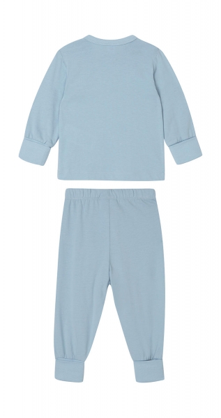 150 g/m², 100% (organická alebo v premene na organickú) bavlna, Single Jersey, dve patentky pri otvore na krku pre všetky veľkosti okrem veľkosti 2-3 roky, extra dlhé rebrované manžety na rukávoch a nohavičkách, ktoré možno nosiť zložené/rozložené (ako dieťa rastie), jednošvové prešitie na límci, odtrhnuteľnýí štítok Tear Away pre jednoduchšiu zmenu značky, štítok starostlivosti s QR kódom na sledovanie dodávateľského reťazca a kontrolu pozitívneho vplyvu nákupu bio