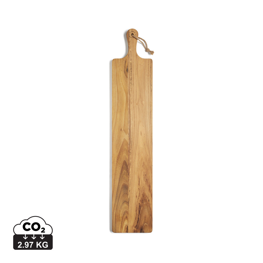 Robustná a veľmi praktická doska na krájanie/servírovanie, ktorá má vďaka svojej dĺžke 75 cm a šírke 15 cm dostatočne veľkú plochu na krájanie i servírovanie. Je vyrobené z teakového dreva s certifikátom FSC a má krásny zlatistý až stredne hnedý povrch, ktorý časom tmavne. Vysoký obsah oleja zaisťuje silnú ochranu proti hnilobe a udržuje ho po dlhú dobu v dobrom stave.
