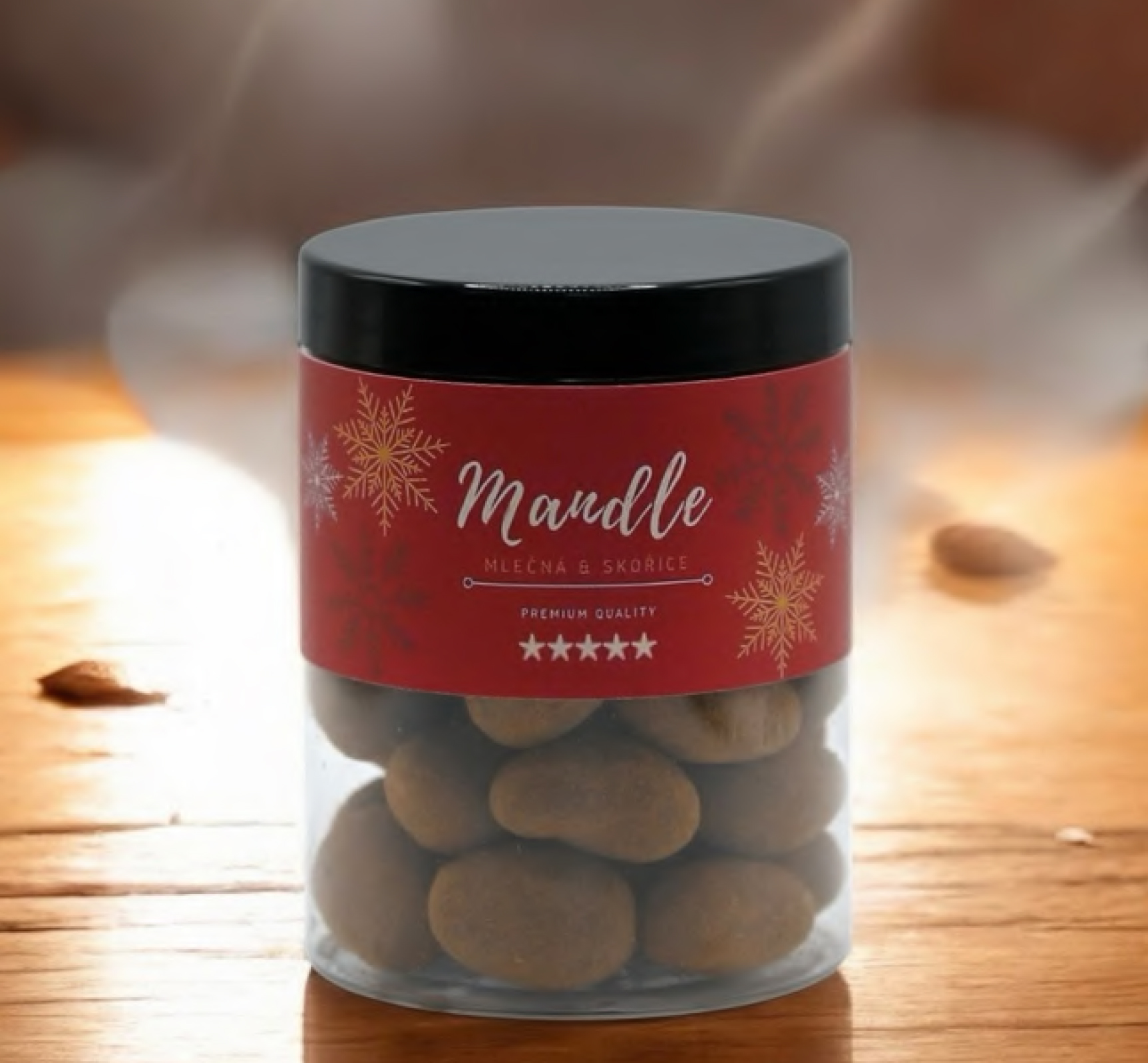 Dhrumkavé mandle obalené v jemnej mliečnej čokoláde a posypané mletou škoricou – lahodná kombinácia chutí a vôní, ktorá vytvára dokonalý sviatočný zážitok.