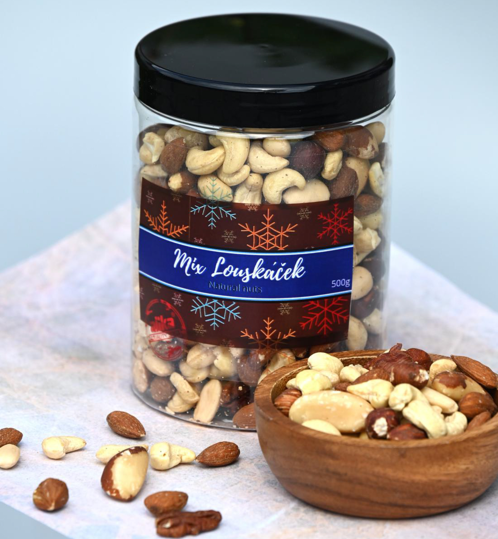 Našu ponuku rozširujeme o delikátnu zmes tých najvyberanejších naturálnych orechov. V elegantnej darčekovej dóze nájdete mandle, kešu, lieskové, para, makadamové a pekanové orechy – všetky v čistej prírodnej podobe, bez prísad.