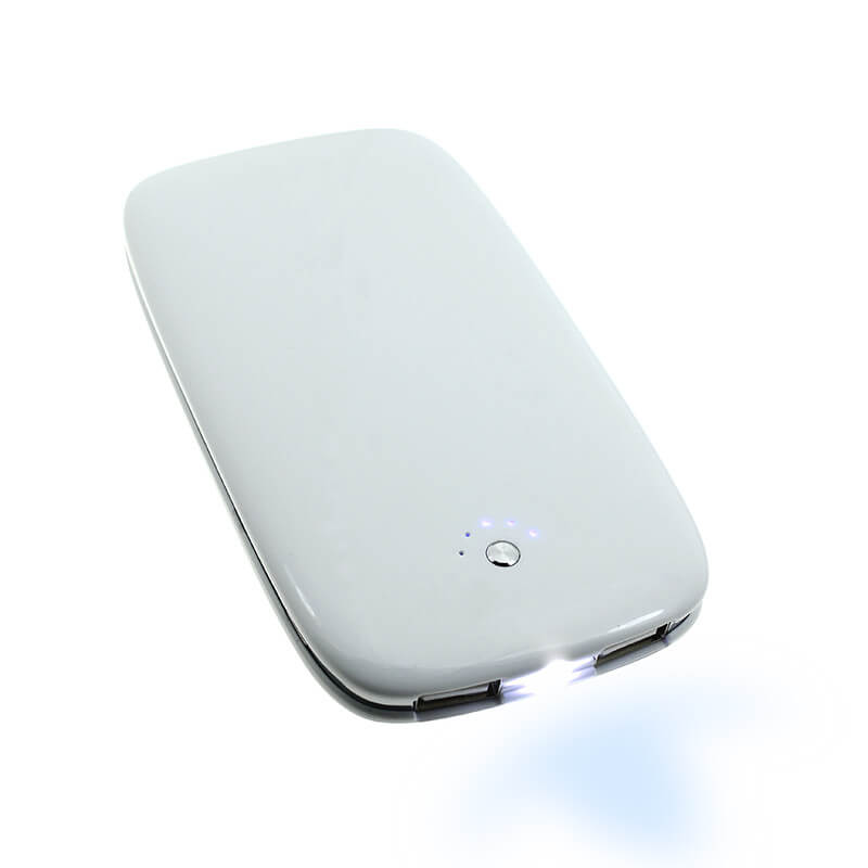 ELEGANTNÁ DUÁLNA EXTRA SLIM POWER BANK S LED SVIETIDLOU, 2000-6000 mAh. Úhľadné ploché puzdro s veľkou plochou pre plnofarebnú potlač. Malé rozmery a nízka váha umožnia pohodlné nosenie vo vrecku obleku či dámskej kabelke, takže máte kedykoľvek k dispozícii dostatok energie pre Vaše mobilné zariadenie. Duálna - nabíja dva prístroje naraz, diódy zobrazujúce zostávajúcu kapacitu batérie a LED svietidlo v prednom paneli. Nabitie Power Bank zaistíte cez USB konektor počítača (prípadne sieťový adaptér) a cez micro USB, popr. iný konektor následne nabijete Váš mobilný telefón alebo iné zariadenie. Plne nabitá Power Bank zaistí 1-2 nabitie mobilného telefónu, podľa svojej kapacity a kapacity batérie telefónu. Nabíja iPhone, mobily, MP3, iPody, iPady, tablety, e-cigarety, kamery a pod.