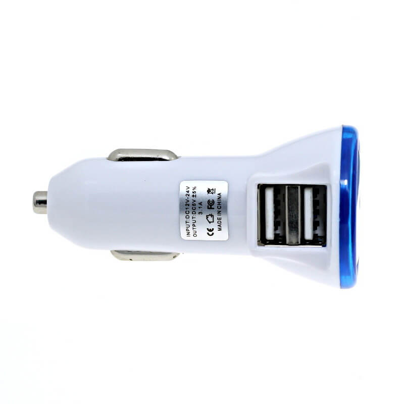 USB duálna auto nabíjačka (USB adaptér do autozapalovača). Vhodný pre reklamnú potlač logom. Nabíja iPod a iPhone, Smartphone, iPad, iPad2 alebo tablet a pod. Má duálny USB port (2 postranné USB výstupy 2,1 A + 1A). LED rámček skvele zvýrazní vaše logo, môže byť v rôznych farbách.