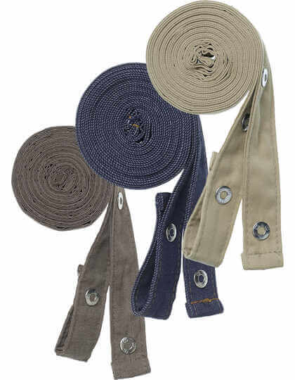 Dva pásy pre čašnícke zástery o dĺžke 130 cm a šírke 2,5 cm. S patentkou na pripevnenie k oku na zástere. Vysoko kvalitná zmesová tkanina. Odolnosť proti pokrčeniu. Odolné. Možno prať pri teplote 95 °C.. Vhodné pre priemyselné pranie a čistenie.