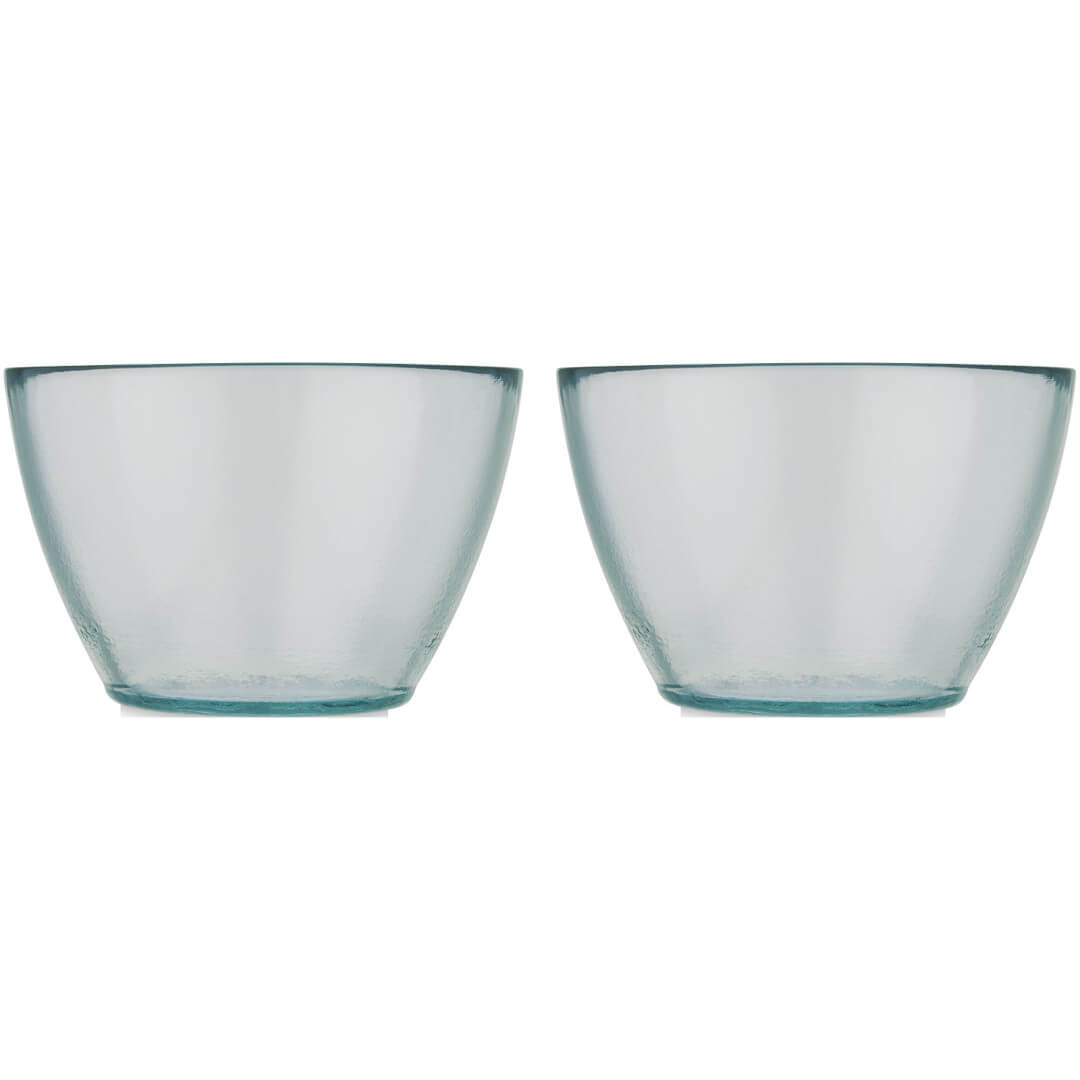 Dvojdielna sada mís zo 100% recyklovaného skla s objemom 700 ml, ideálna na podávanie šalátov. Misy sú vyrobené z recyklovaných sklenených fliaš. Recyklované sklo sa vyrába s použitím menšieho množstva energie, surovín a aditív, než je nutné na výrobu tradičného skla. Vhodné do umývačky.