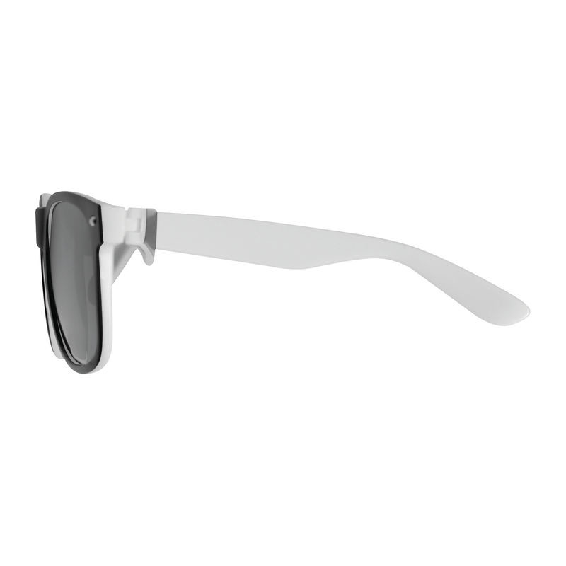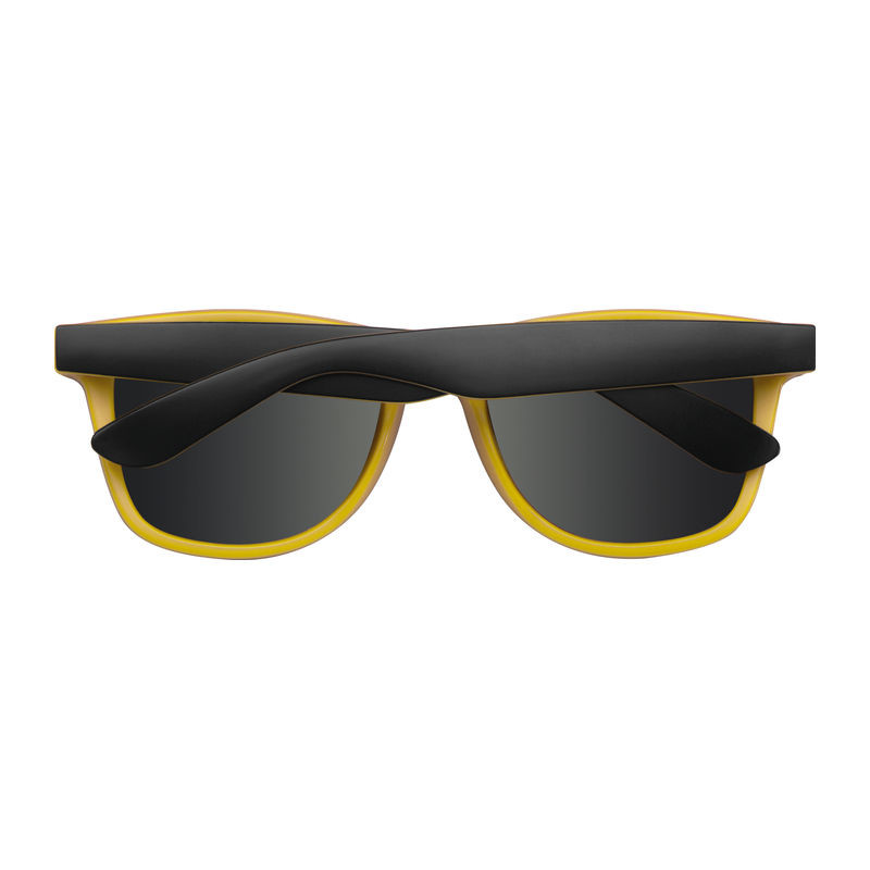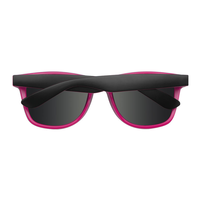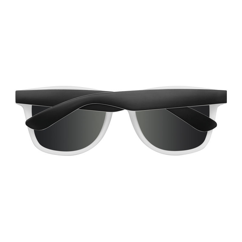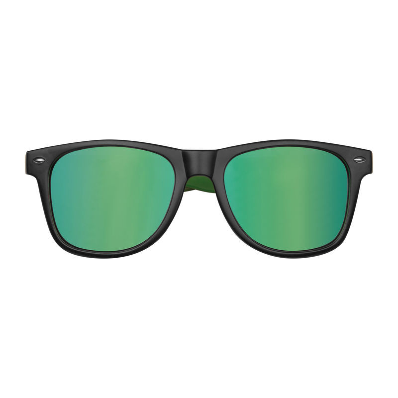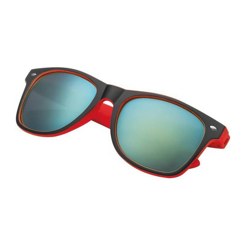 Štýlové dvojfarebné plastové slnečné okuliare so zrkadlovými šošovkami, ochranným filtrom UV 400, 3.kategória. Spôsob potlače tampónová potlač.