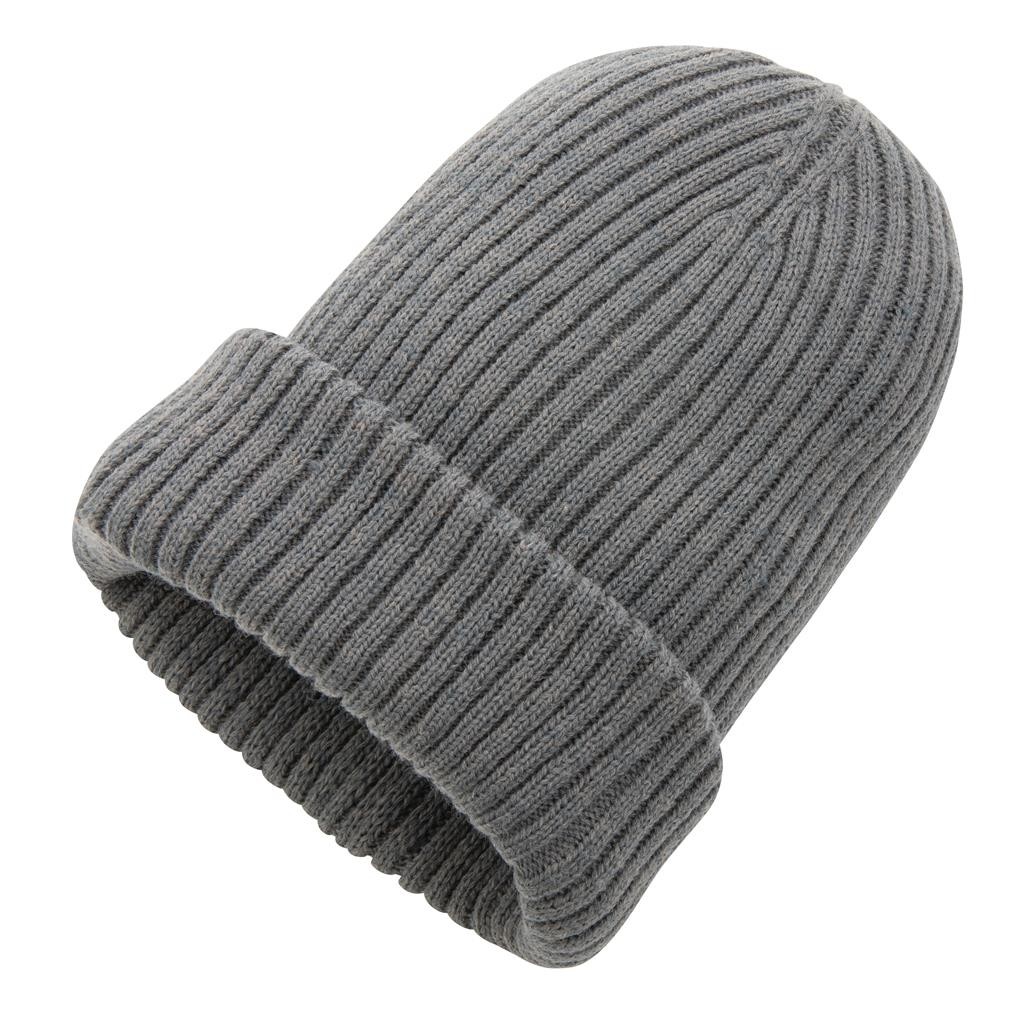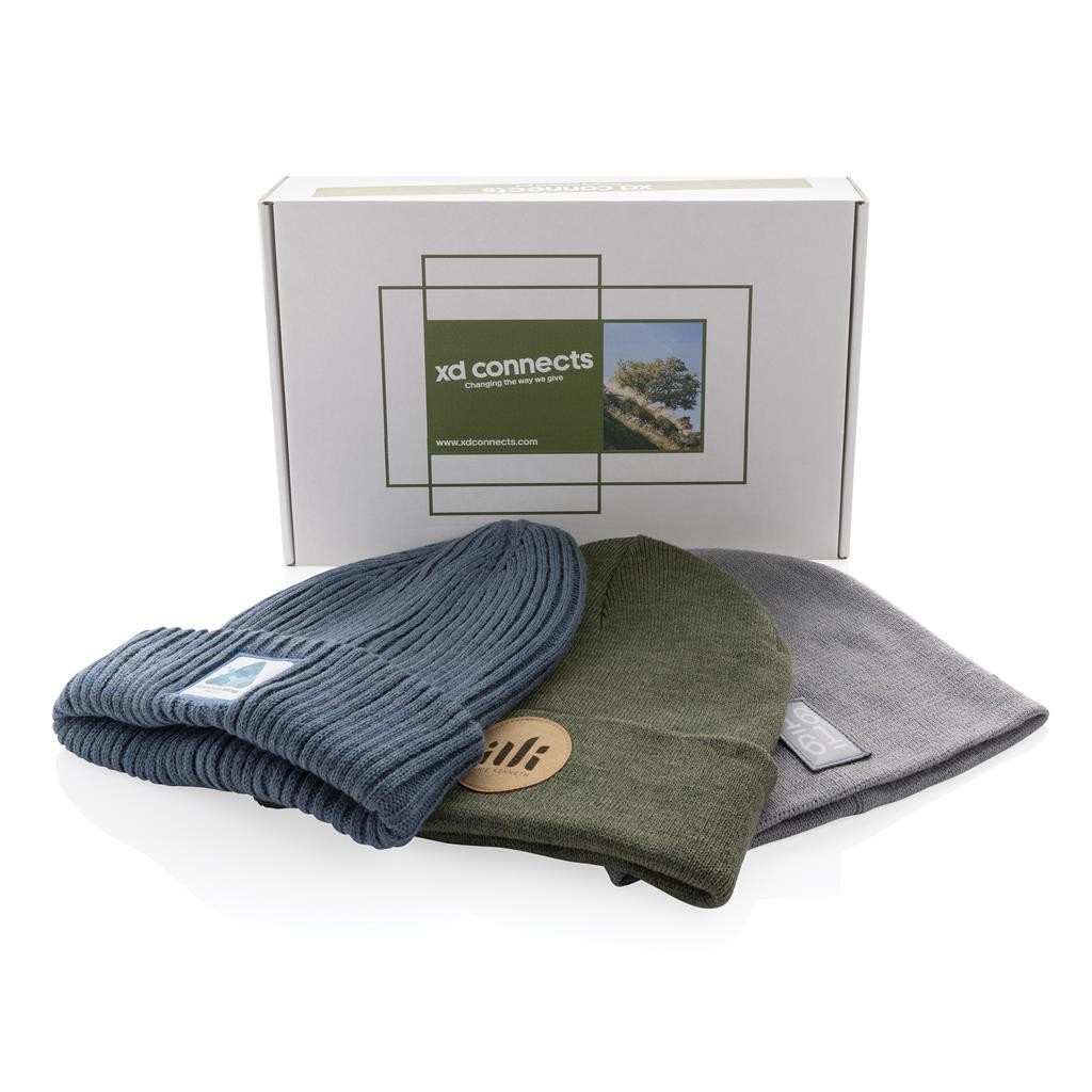Štýlová dvojito pletená čiapka v klasickom beanie prevedení s prehybom, ktorý padne každému. Vyrobená zo špeciálneho materiálu Polylana®, ktorý vás bezpečne zahreje aj v chladných dňoch. Polylana® je unikátna priadza vyrobená z kombinácie panenských a recyklovaných materiálov. Tým sú zaistené ideálne vlastnosti výrobku pri usporení maximálneho množstva energie a vody. Vrátane skenovateľnej zložky AWARE™ garantujúcej obsah recyklátu. Výrobou každého kusu bolo usporených 5,5 litrov vody. Z výťažku každého predaného produktu z kolekcie Impact je navyše prispených 2% na podporu iniciatívy Water.org. One size veľkosť.