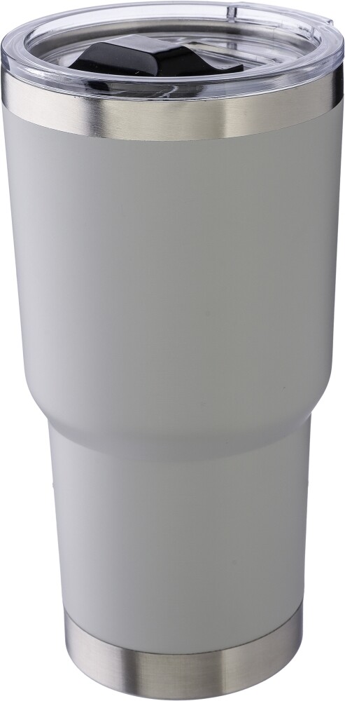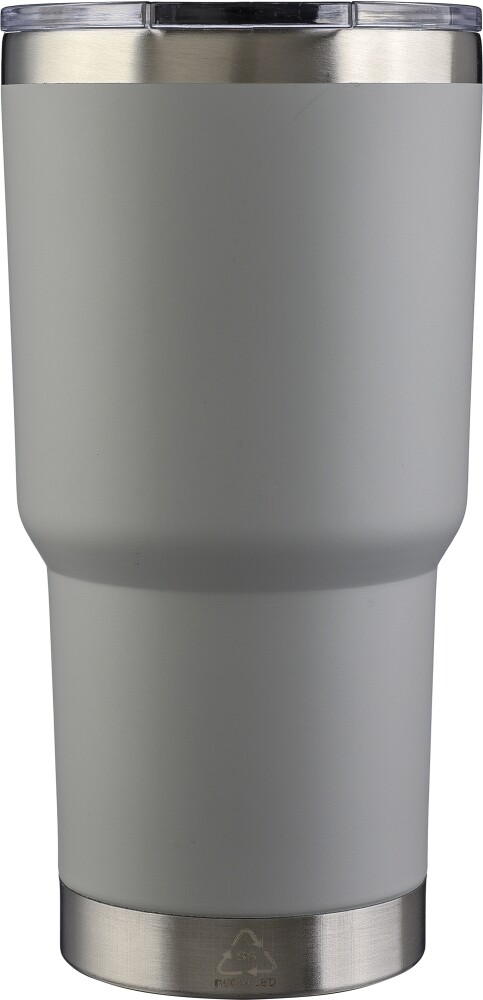Hrnček z nehrdzavejúcej ocele s dvojitou stenou (590 ml) a vrchnákom z PS. Na hrnčeku je vygravírované recyklované logo. Vnútorná strana je vyrobená z nehrdzavejúcej ocele 304 a vonkajšia strana z nehrdzavejúcej ocele 201. Jednotlivo balené v hnedej kartónovej krabici. Rozmery: 9 x 18 cm
