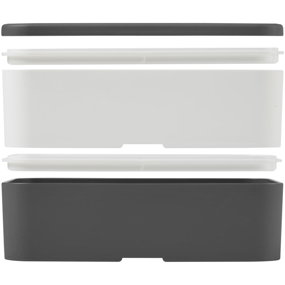 Väčšia kapacita vďaka tejto dvojvrstvovej obedovej krabičke MIYO. S jednou alebo dvoma základňami s objemom 700 ml je veľa miesta pre sendviče, ovocie, šalát a mnoho ďalšieho, a to všetko drží na svojom mieste opasok vyrobený z recyklovaného PET. K dispozícii sú ďalšie farebné kombinácie a príslušenstvo, ako je lyžica kombinovaná s vidličkou alebo vnútorná priehradka. Pre podrobnosti nás prosím kontaktujte. Vhodné do mikrovlnnej rúry, umývačky riadu, bez BPA a plne recyklovateľné. Vyrobené vo Veľkej Británii a balené do doma kompostovateľného vrecka. Svoje MIYO si môžete plne personalizovať pridaním mien jednotlivých zákazníkov na veko - pre viac informácií nás prosím kontaktujte.