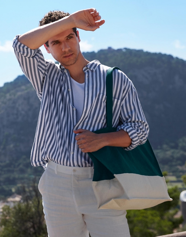- 400 g/m² - 100 % bavlna (ekologické plátno) - krčivé pranie - vysokokvalitná, ťažká tkanina - panel v kontrastnej farbe - detail orámovaného stehu - držadlá na prenášanie z rovnakej tkaniny - možno prenášať v ruke alebo cez plece - jednoduché prelepenie - držadlá na prenášanie: 68 cm - objem: 32 l. - Rozmery: 52 x 38,5 x 16 cm - Max. Plocha tlače: 49 x 21 cm (horná predná časť), 49 x 10 cm (spodná predná časť)